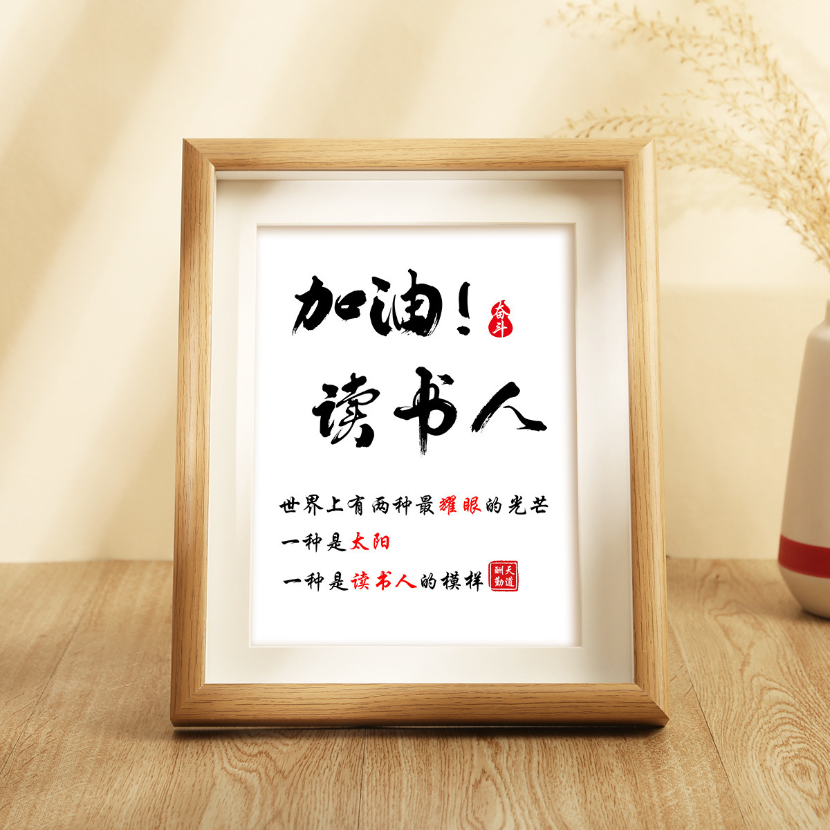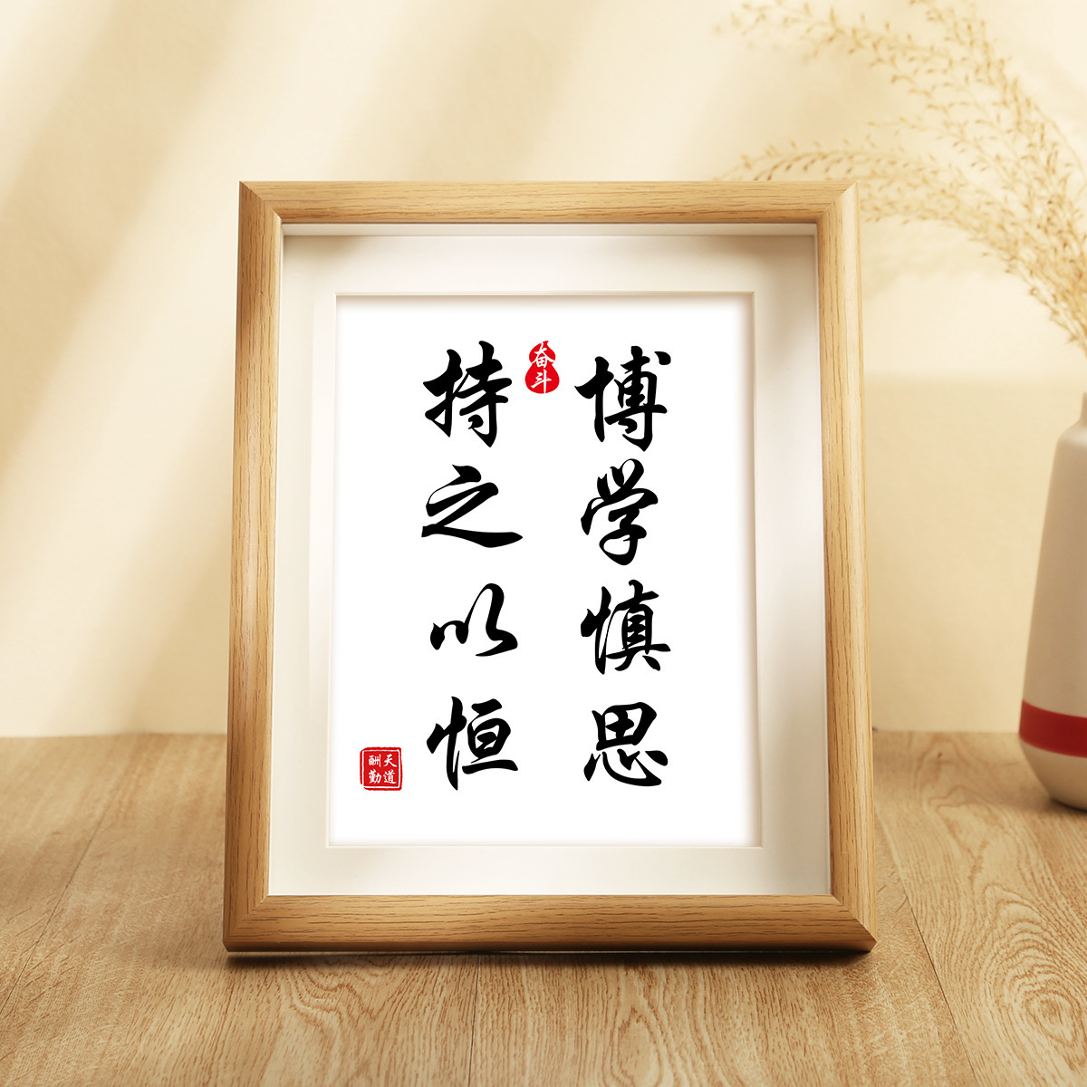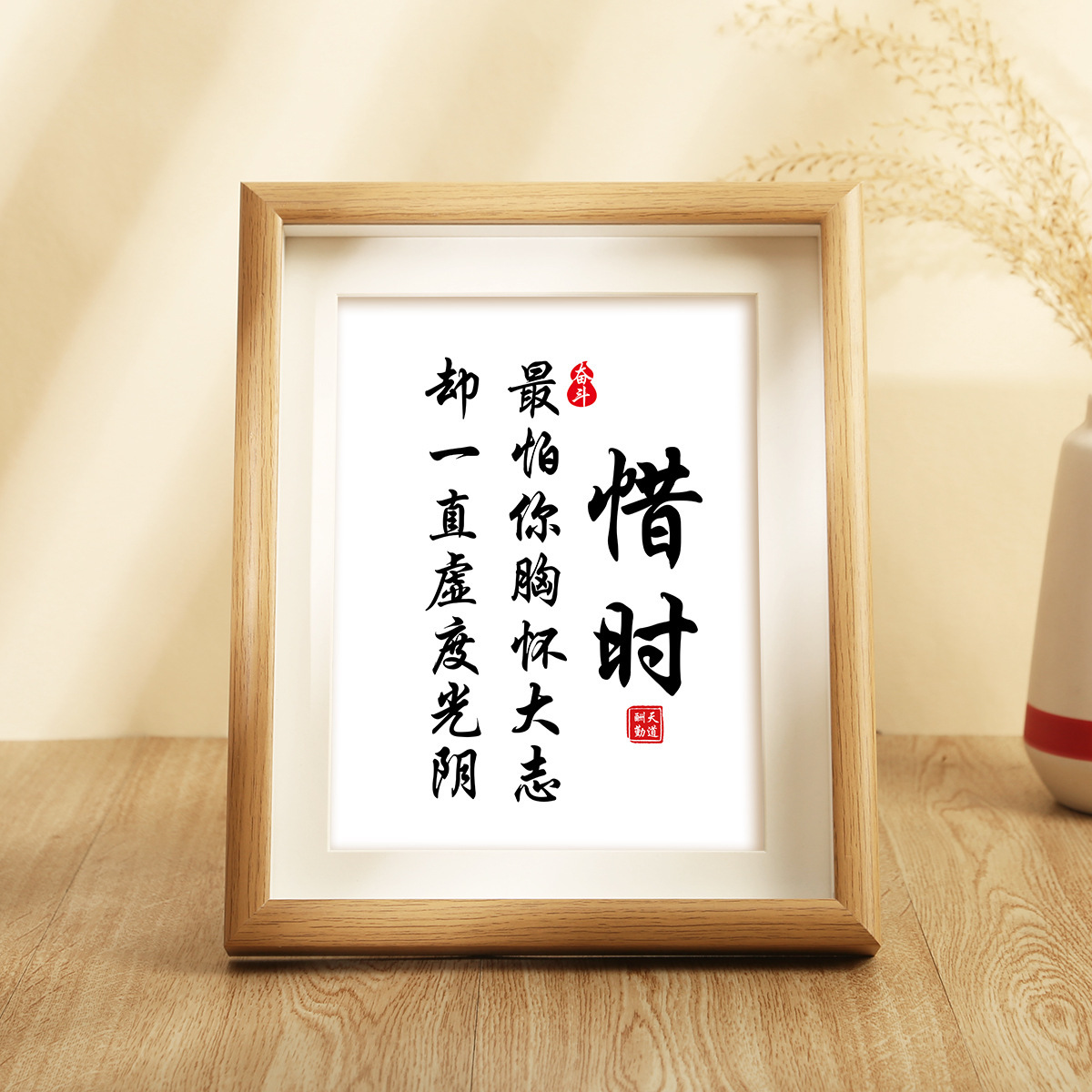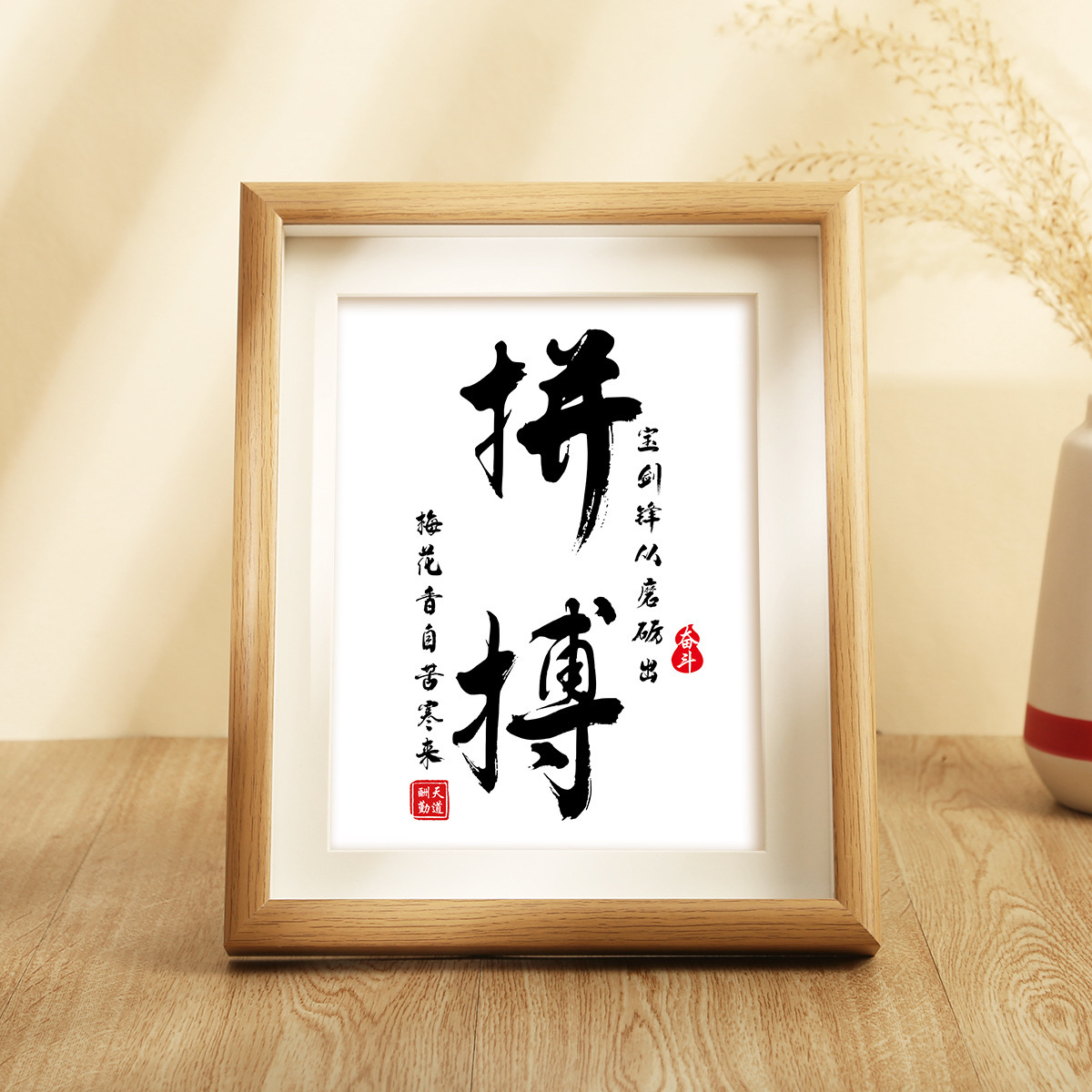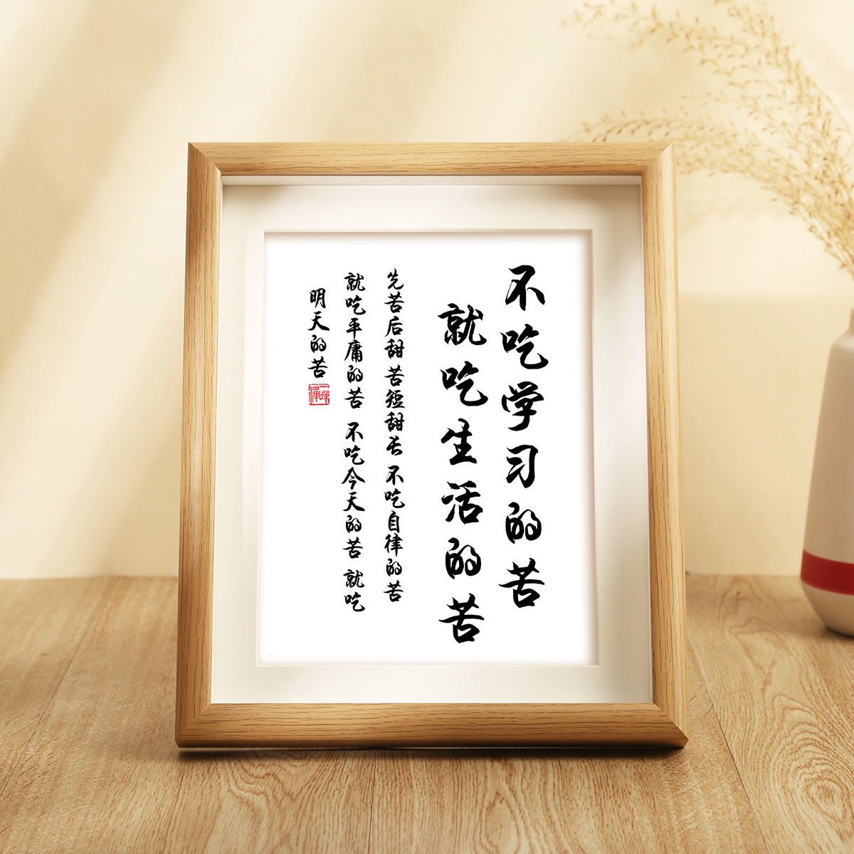 학습은 매우 어렵고 고무적입니다. 나무 사진 프레임 서예 작업을 주장하십시오. 프레임 행운의 캐릭터 작은 사진 프레임 그림 프레임 DIY 프레임 설정 테이블스토어 가기