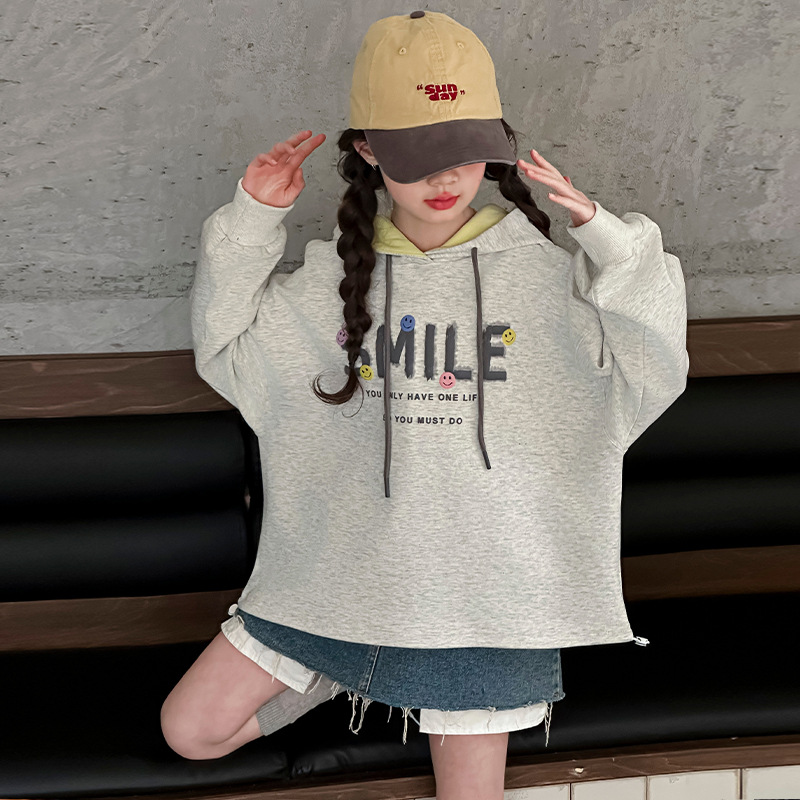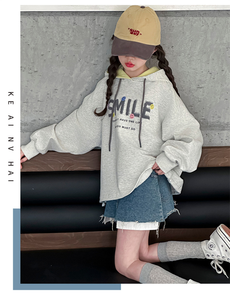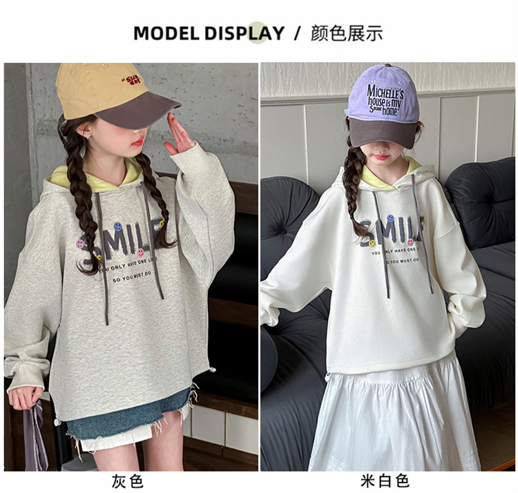 소녀 스웨터 봄 2025 새로운 소녀 한국 후드 탑 큰 어린이 봄과 가을 서양식 레저 긴 소매 도매스토어 가기