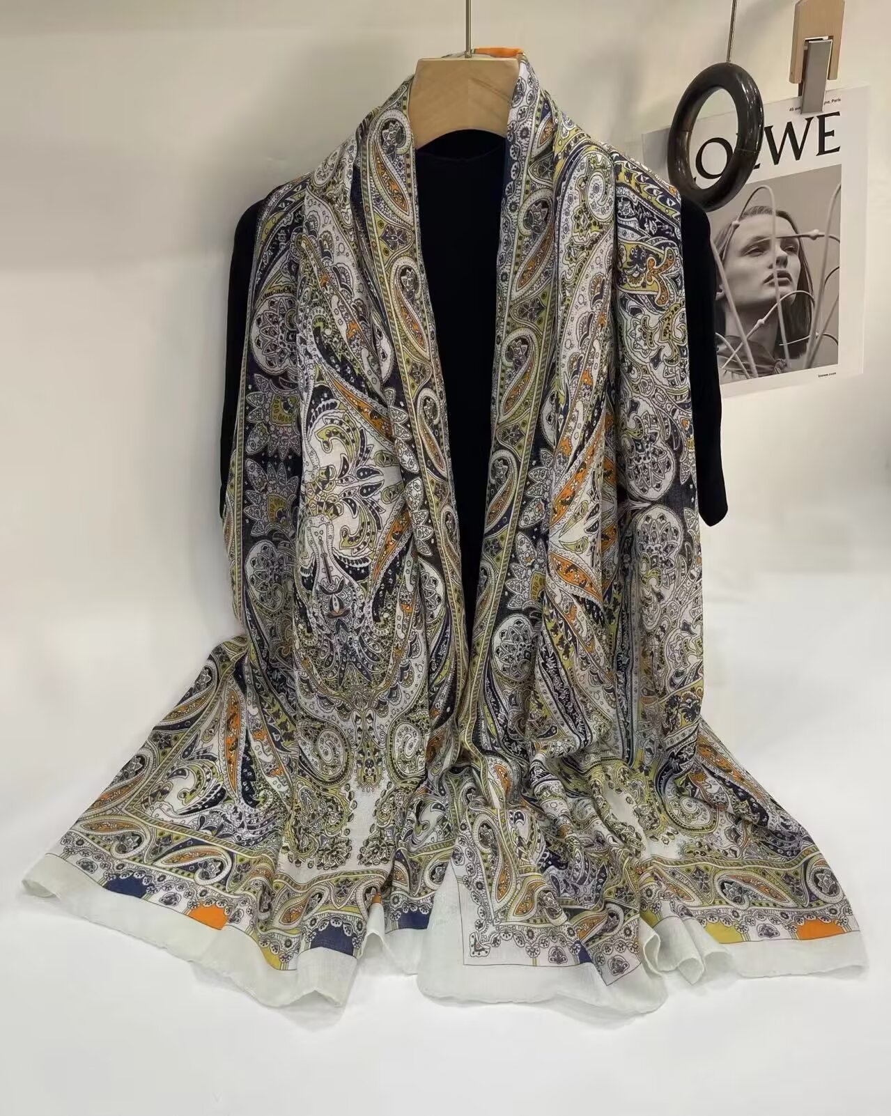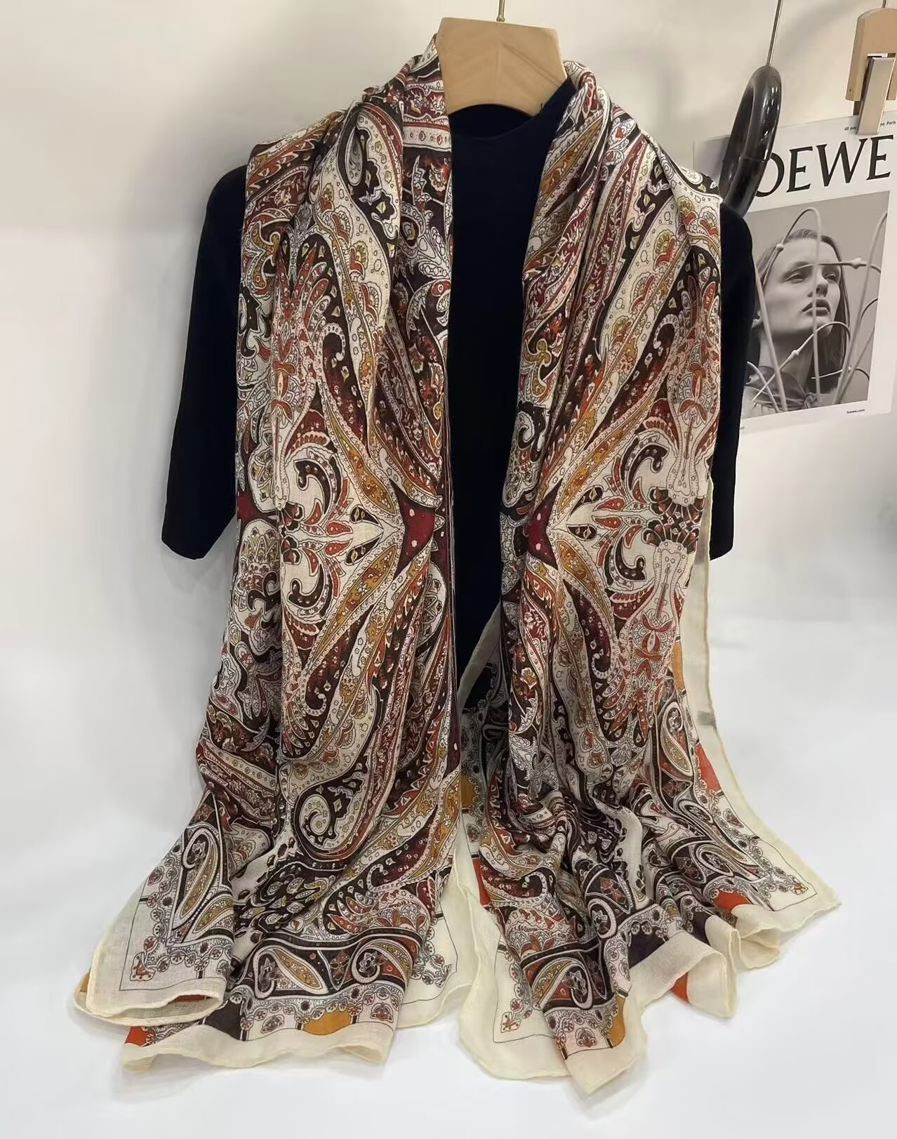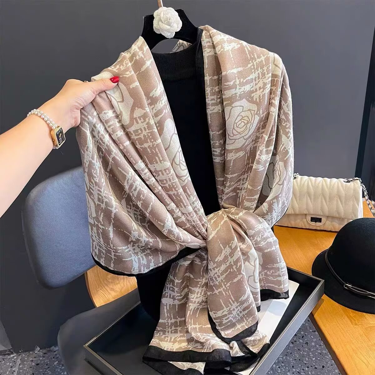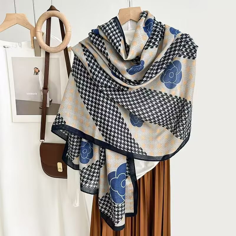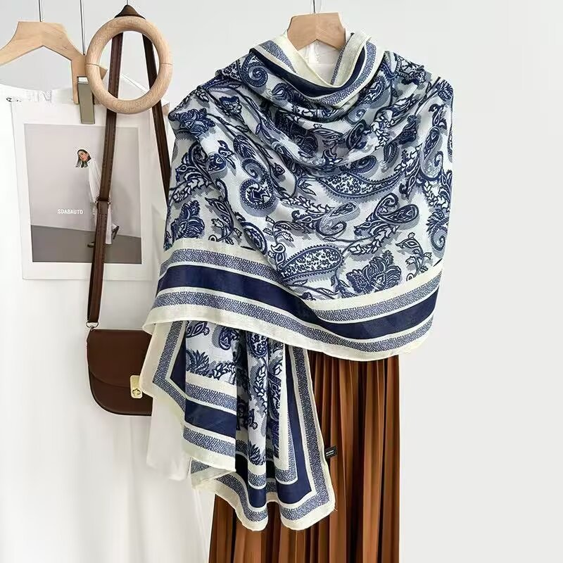 봄 여름 가을 겨울 면화 리넨 긴 스카프 고급 스카프 일본과 한국 여성 목도리 우아한 우아한 인쇄 스카프