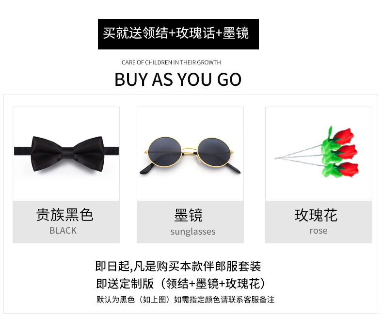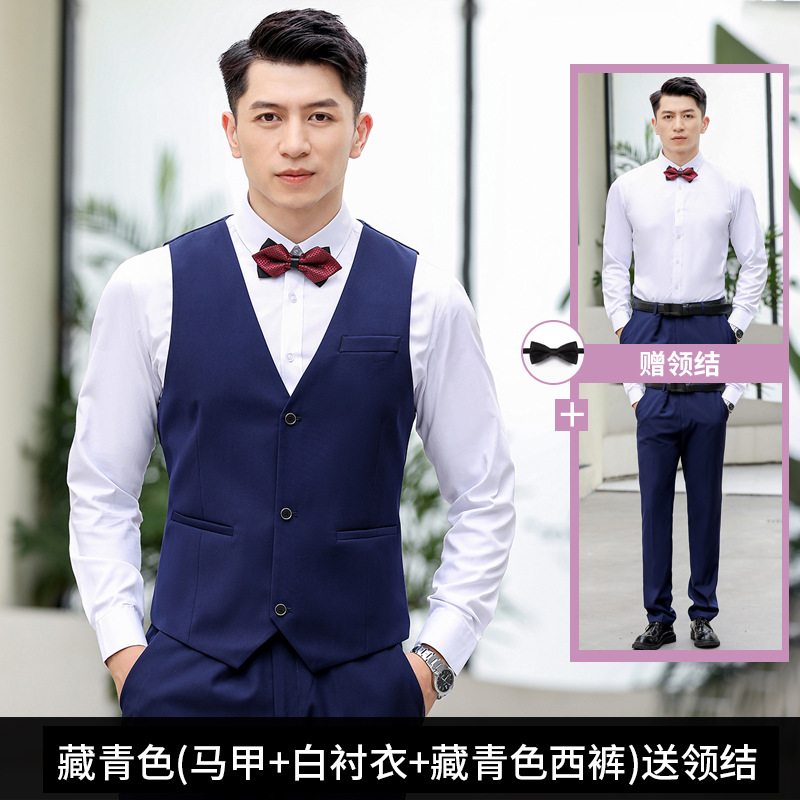 • 남색(양복+조끼+남색 바지+흰색 셔츠)에 나비넥타이가 함께 제공됩니다.