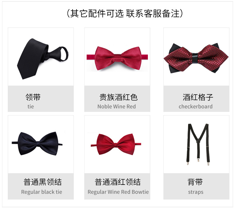 • 회색(양복+회색 바지+조끼)에는 나비넥타이가 함께 제공됩니다.