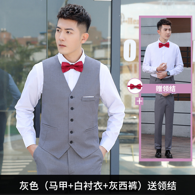 • 그레이 (슈트+조끼+그레이 바지+흰색 셔츠) 프리 나비넥타이