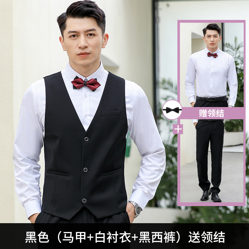 • 검정색(조끼 + 흰색 셔츠 + 검정색 바지)에 나비넥타이가 함께 제공됩니다.
