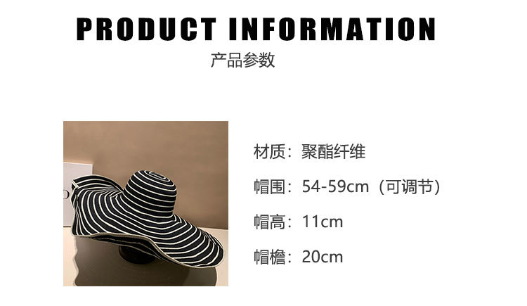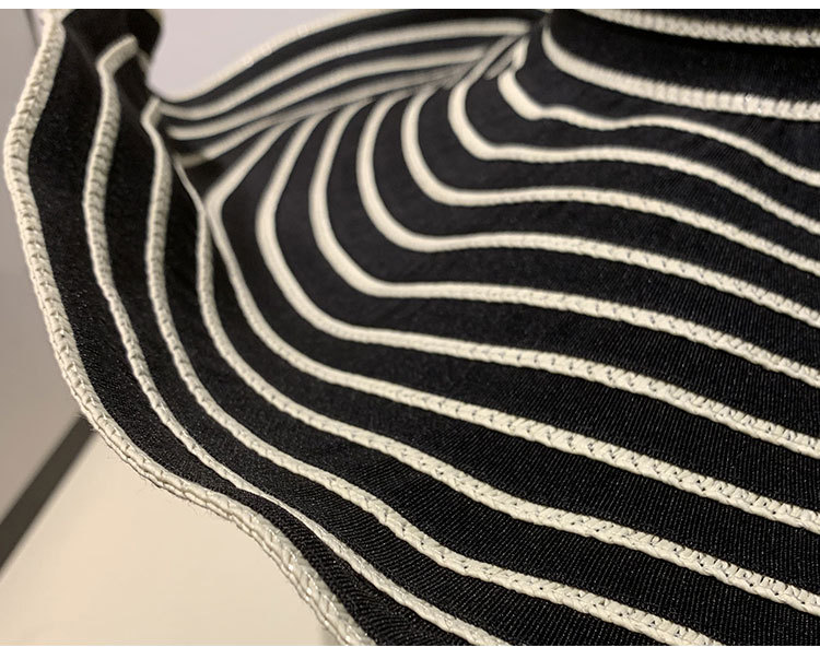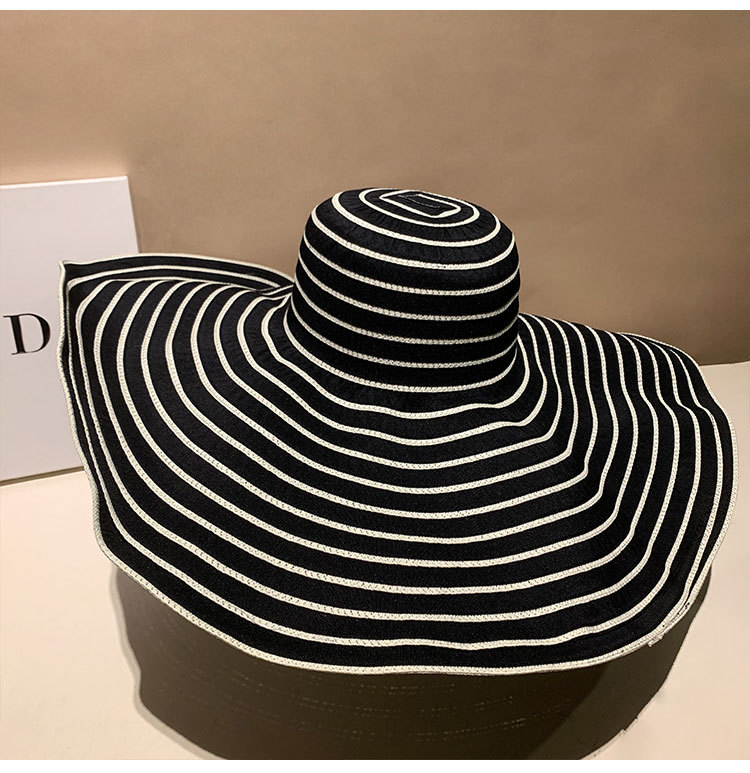 大帽檐条纹防晒沙滩太阳帽女夏季海边度假出游百搭防紫外线遮阳帽