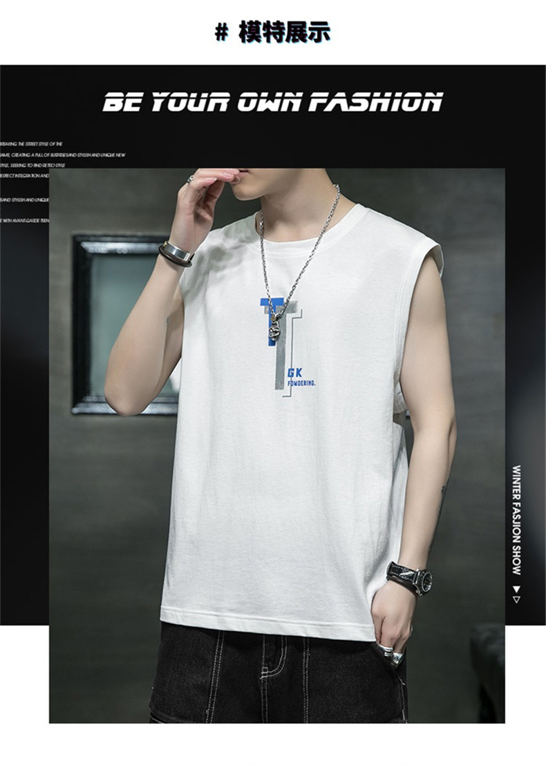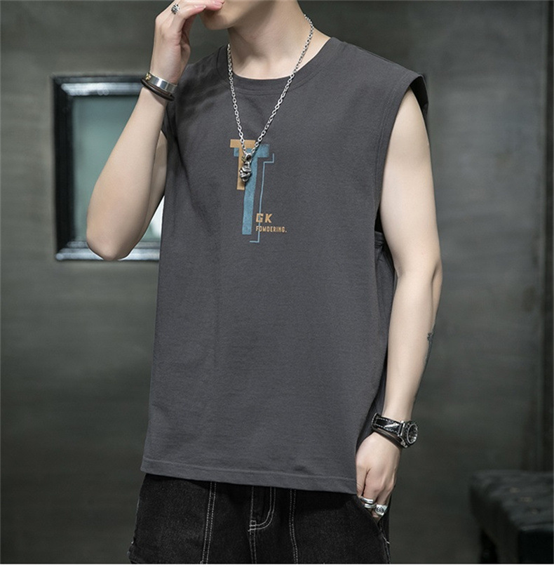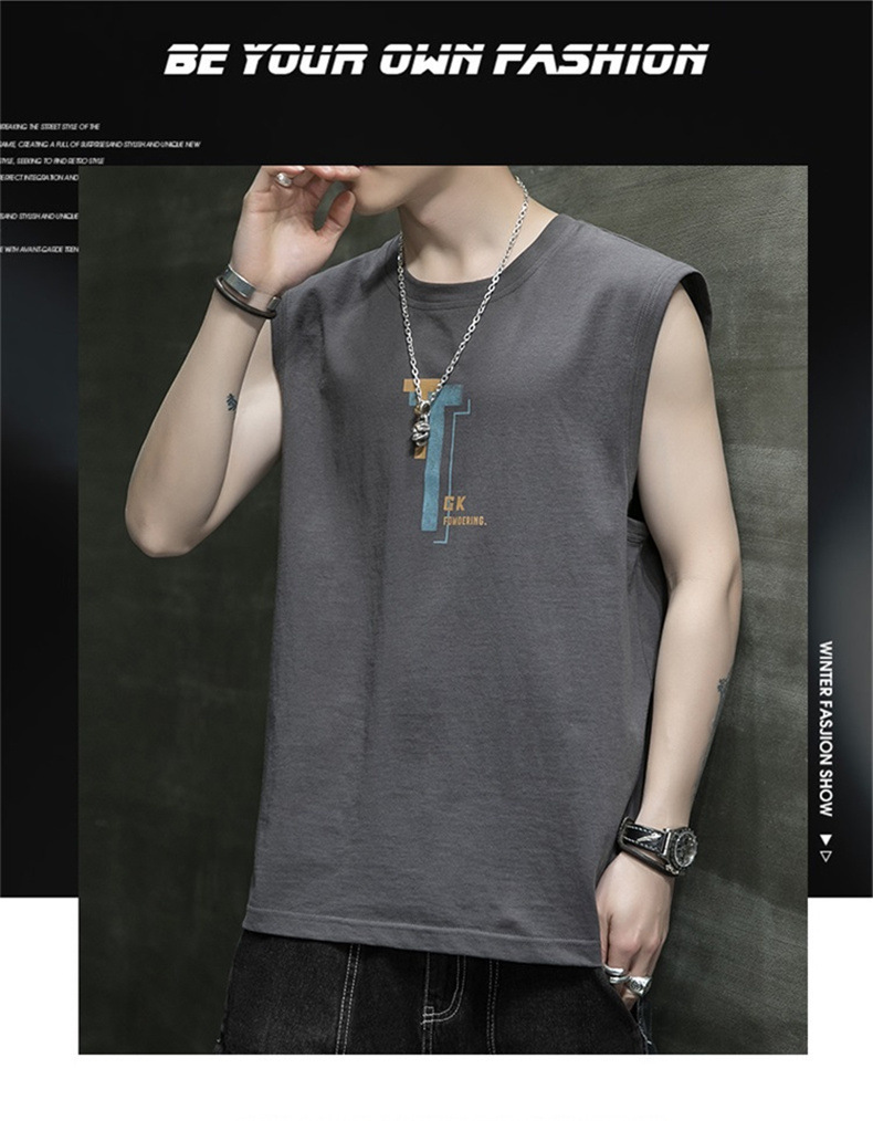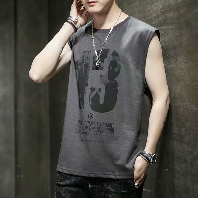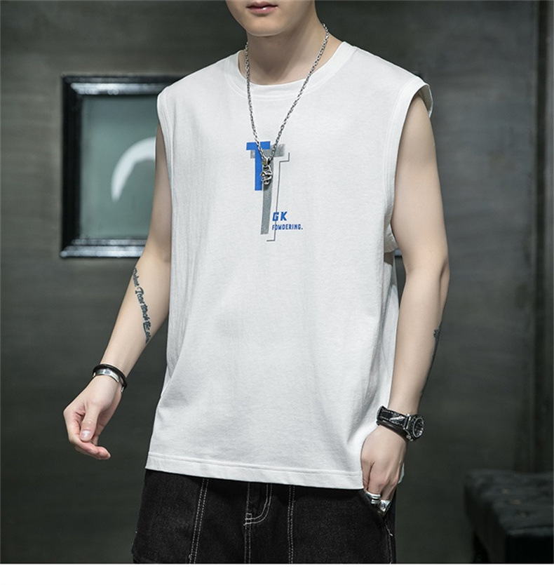 조끼 남자의 여름 새로운 민소매 느슨한 어깨 스포츠 피트니스 맞춤형 겉옷 패션 트렌디 프린트 탑