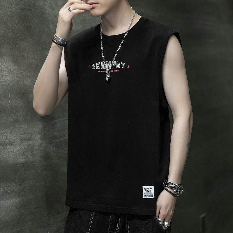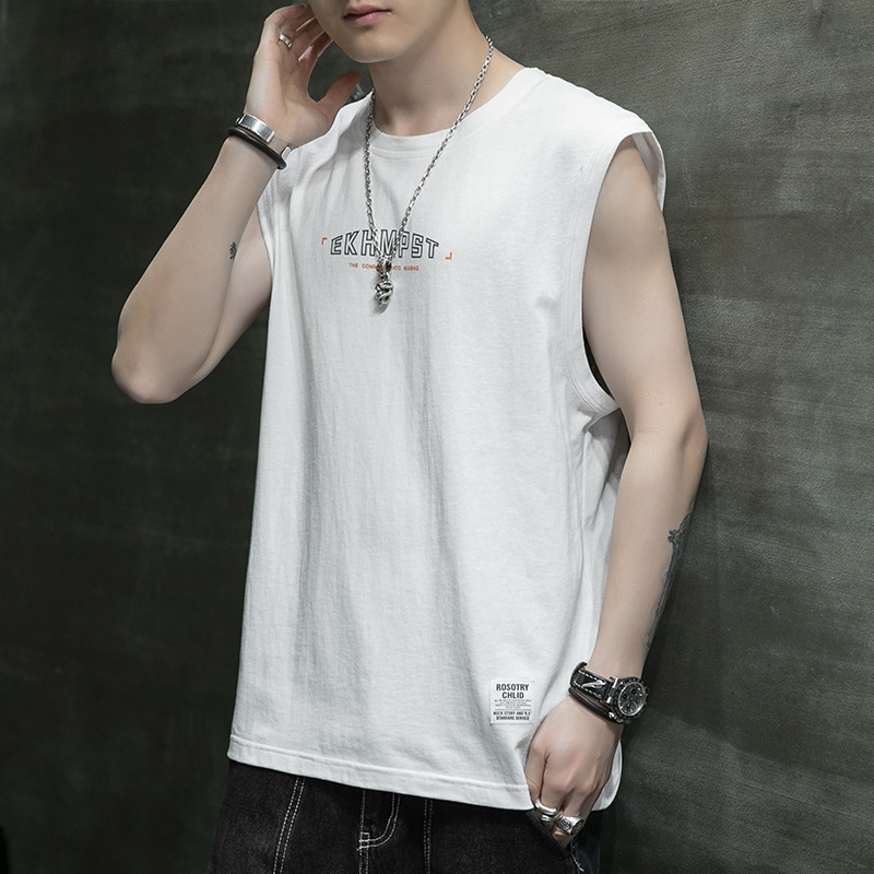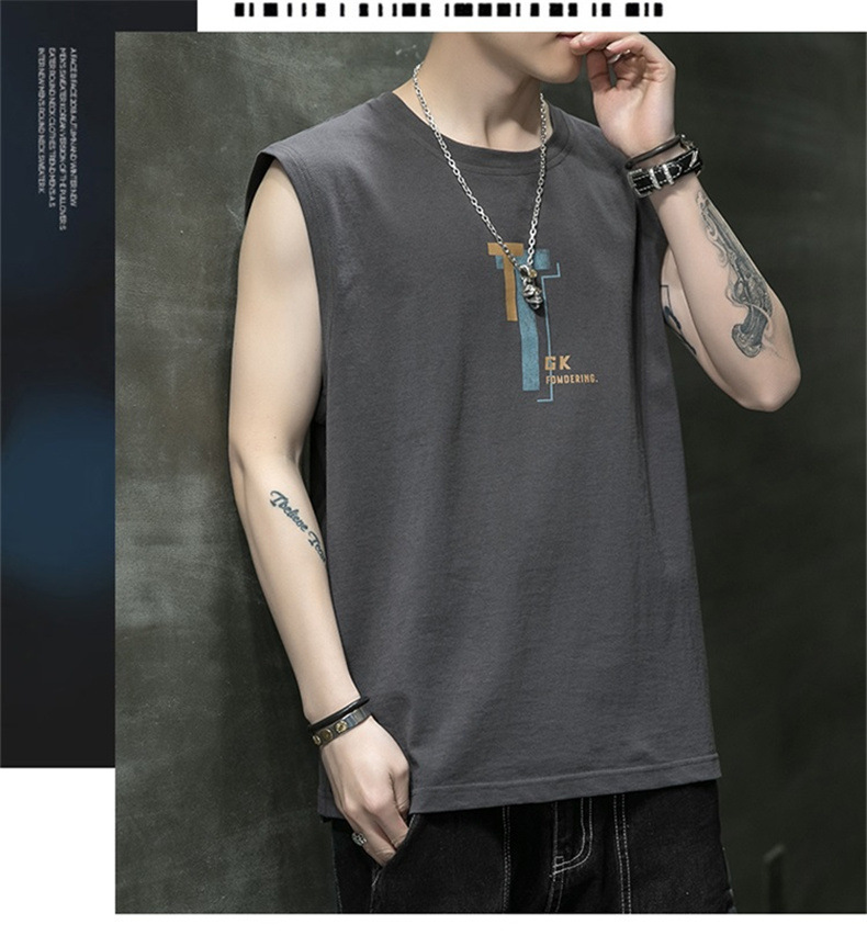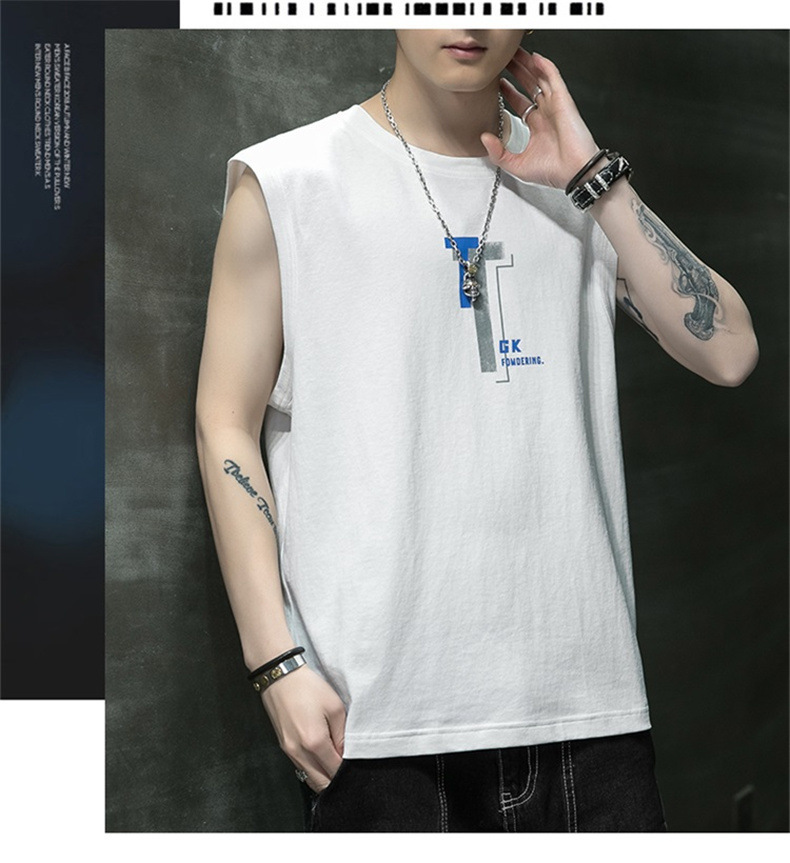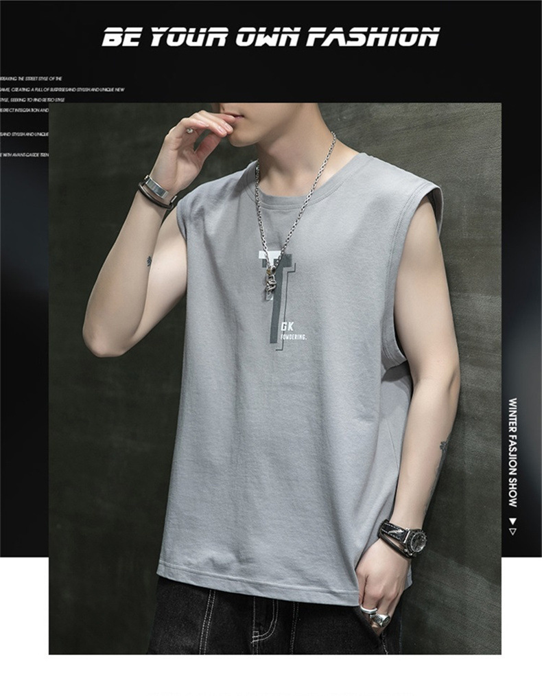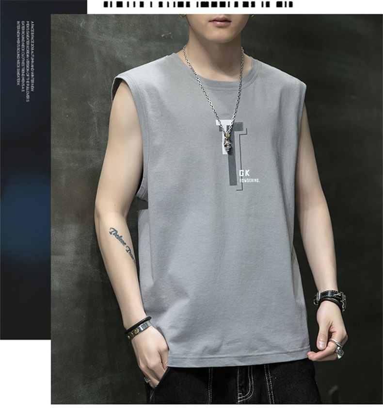 조끼 남자의 여름 새로운 민소매 느슨한 어깨 스포츠 피트니스 맞춤형 겉옷 패션 트렌디 프린트 탑스토어 가기