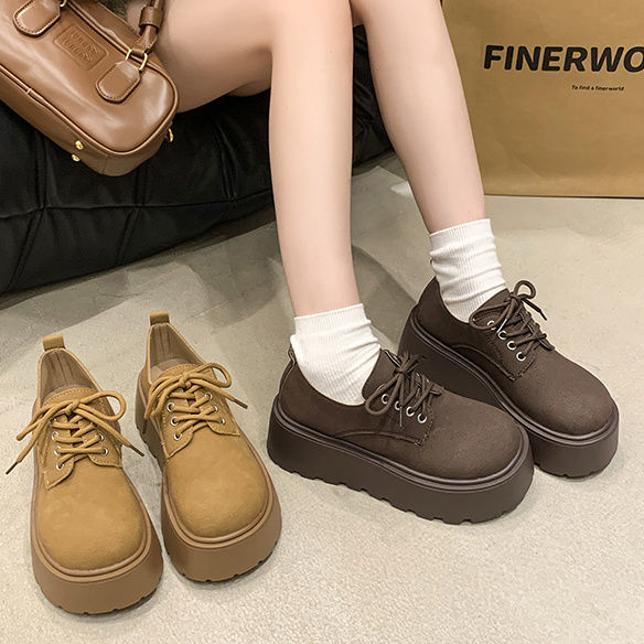 Birkenneth 신발 여성 2025 여름 새로운 두꺼운 밑창 레이스 업 올 매치 패셔너블 작은 캐주얼 Lefu 싱글 레이어 신발스토어 가기