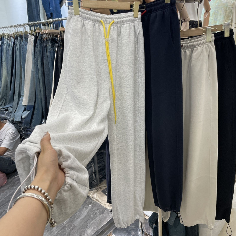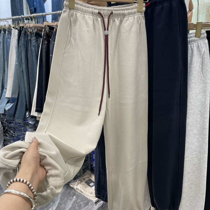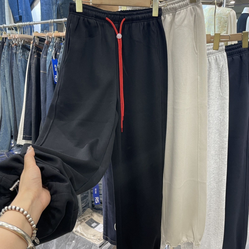 다채로운 현악기 스포츠 바지 유럽 두 착용 와이드 다리 발목 바지 가을 새로운 느슨한 캐주얼 스트레이트 바지