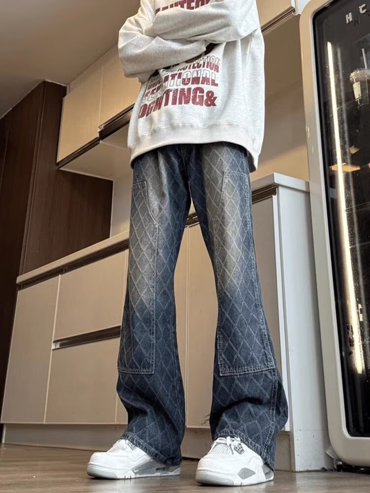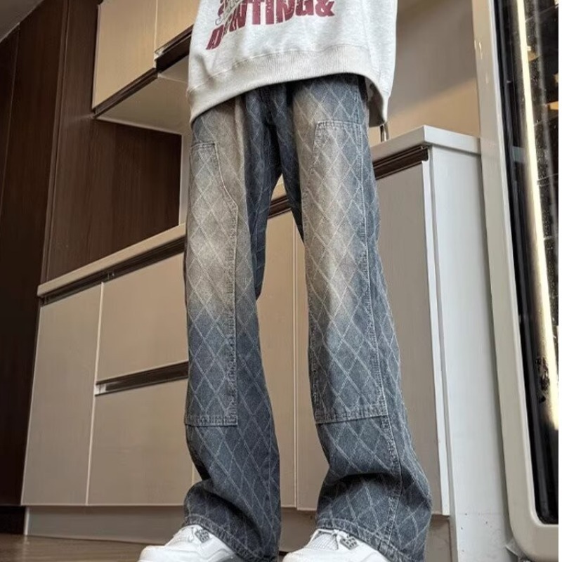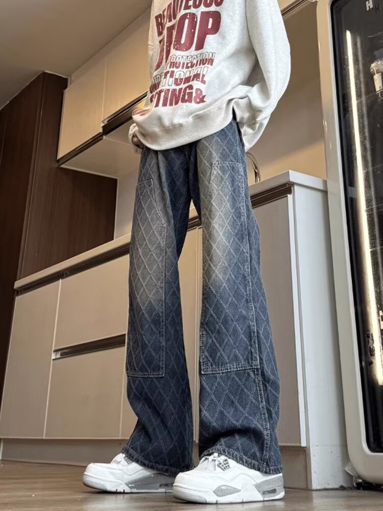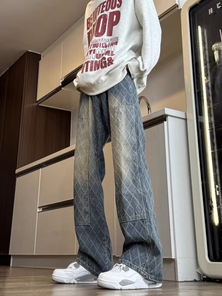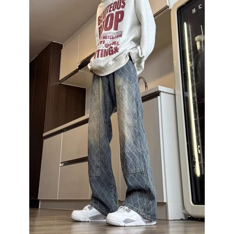 공장 재고 마름모 크로 셰 세척 물 데님 직물 여성의 넓은 다리 바지 코트 데님 펀칭 직물 도매스토어 가기