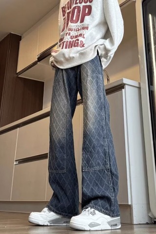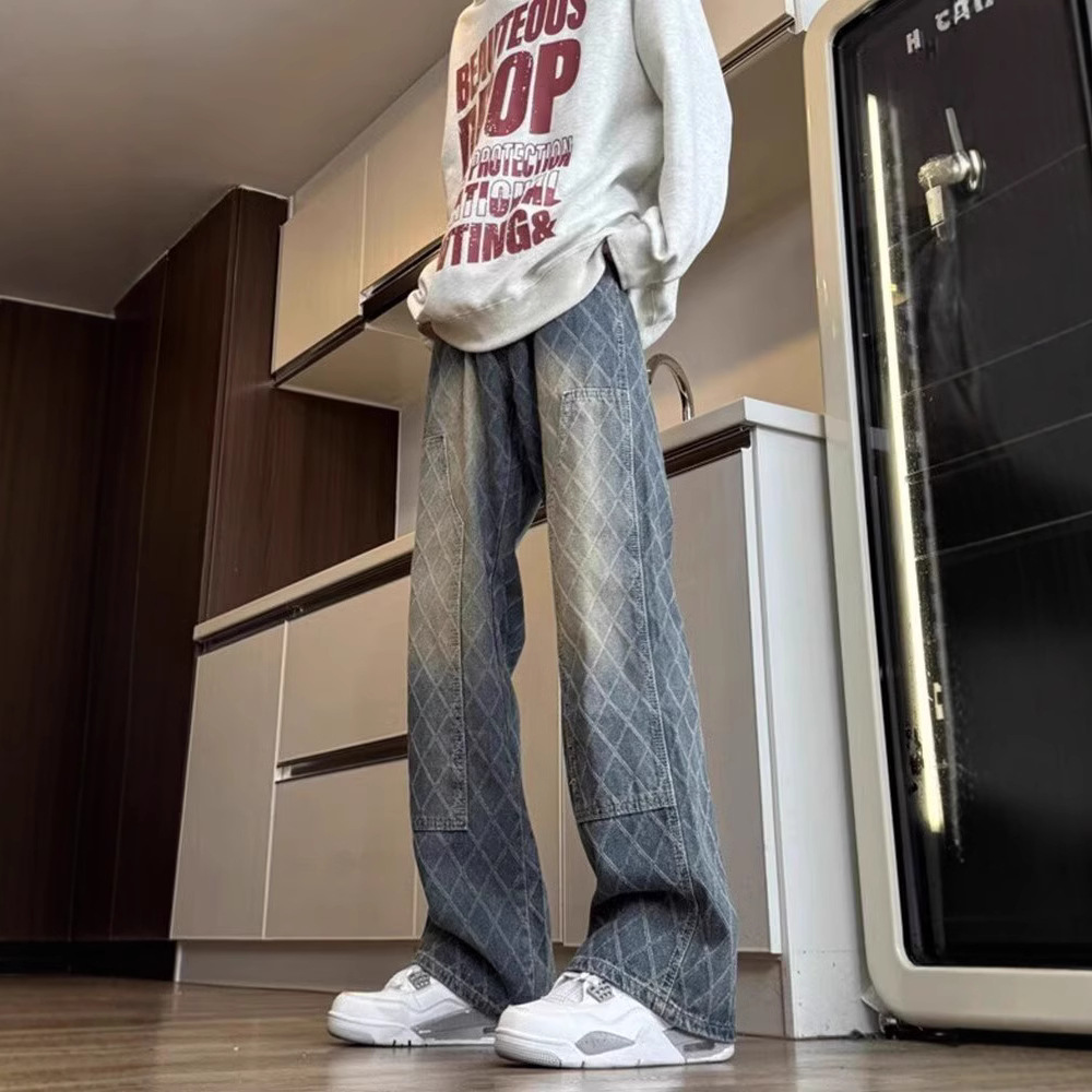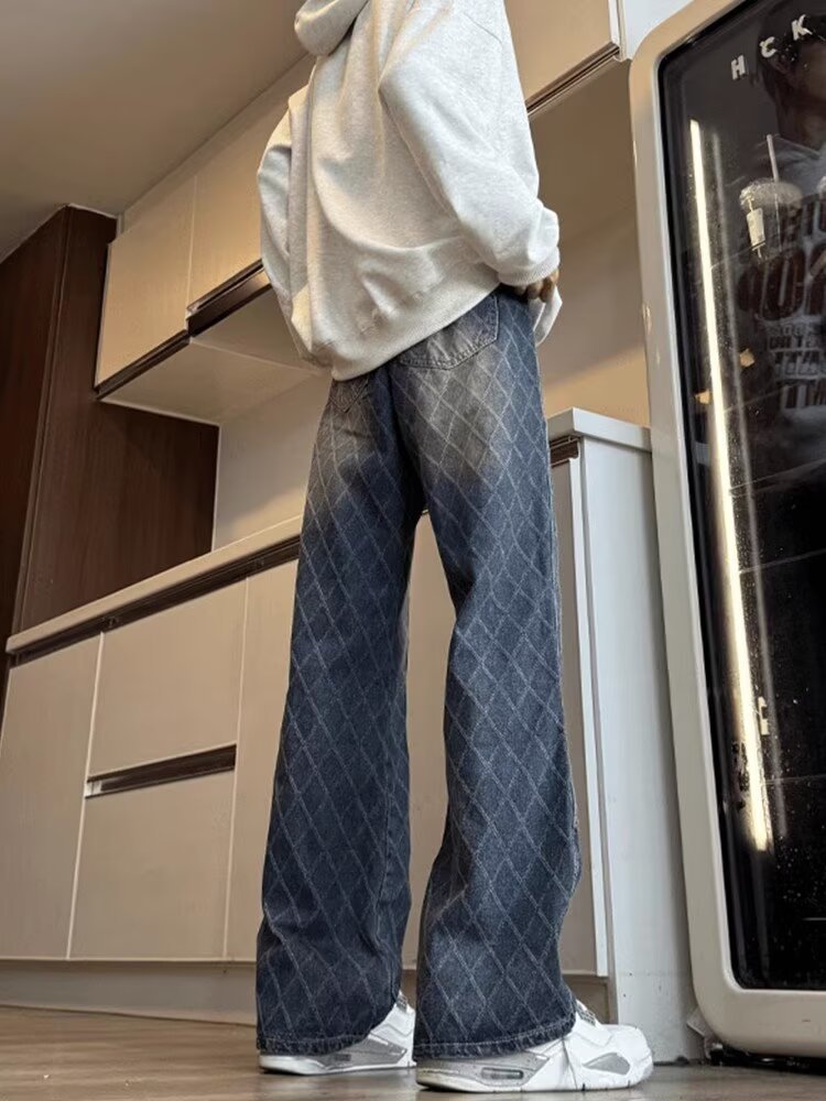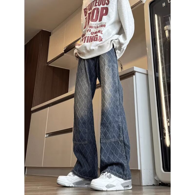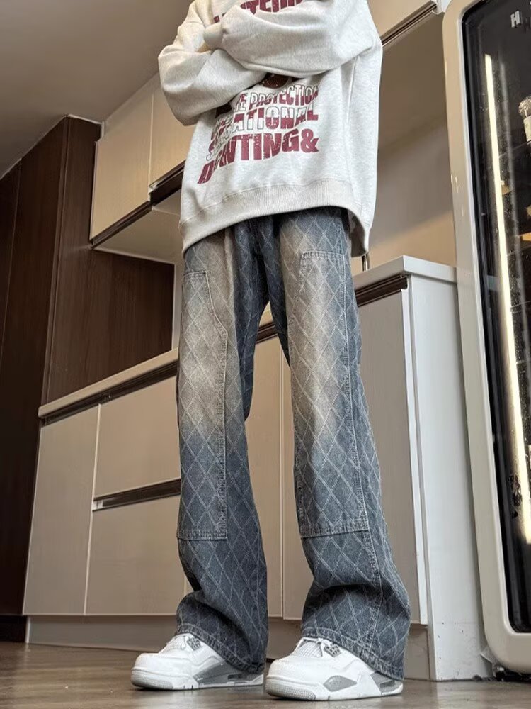 공장 재고 마름모 크로 셰 세척 물 데님 직물 여성의 넓은 다리 바지 코트 데님 펀칭 직물 도매스토어 가기