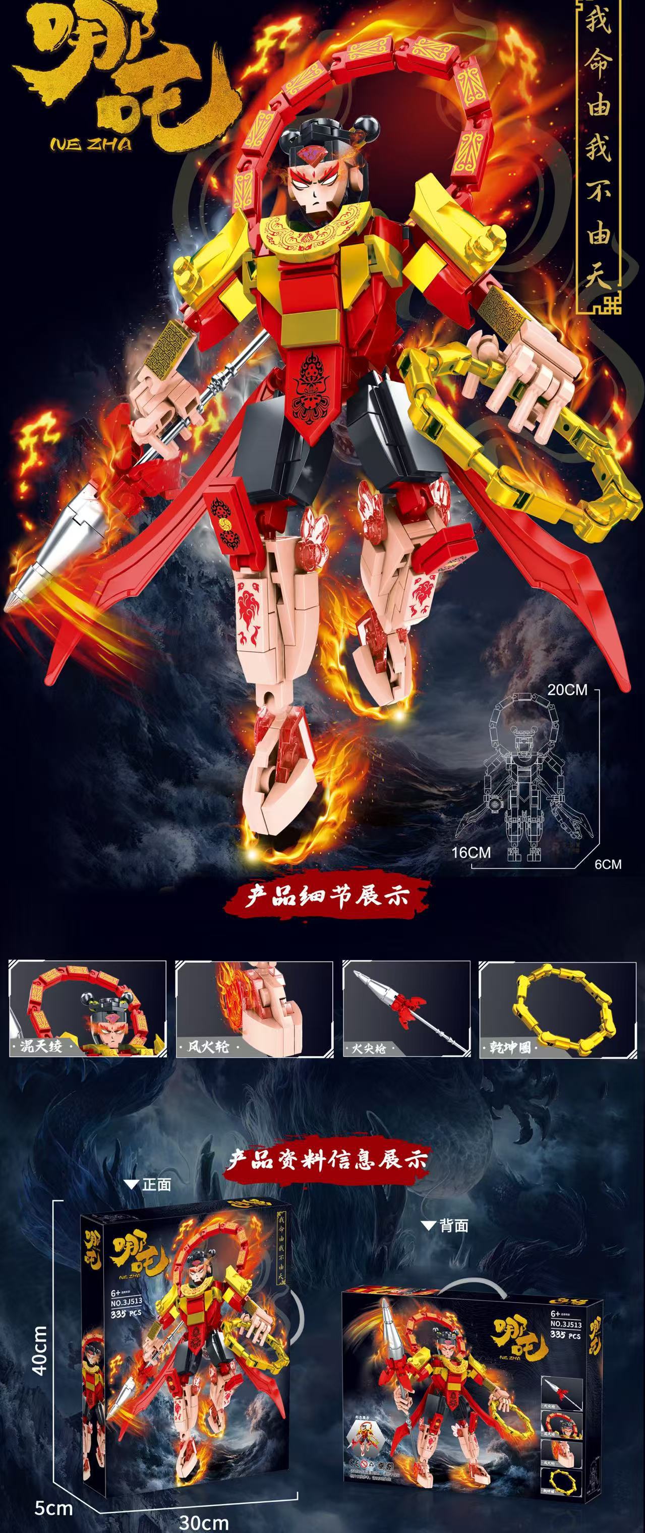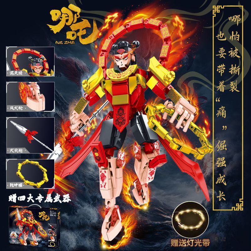 집에서 만든 건물 블록 Nezha Mecha 절묘한 선물 상자 소년의 교육 조립 장난감 선물