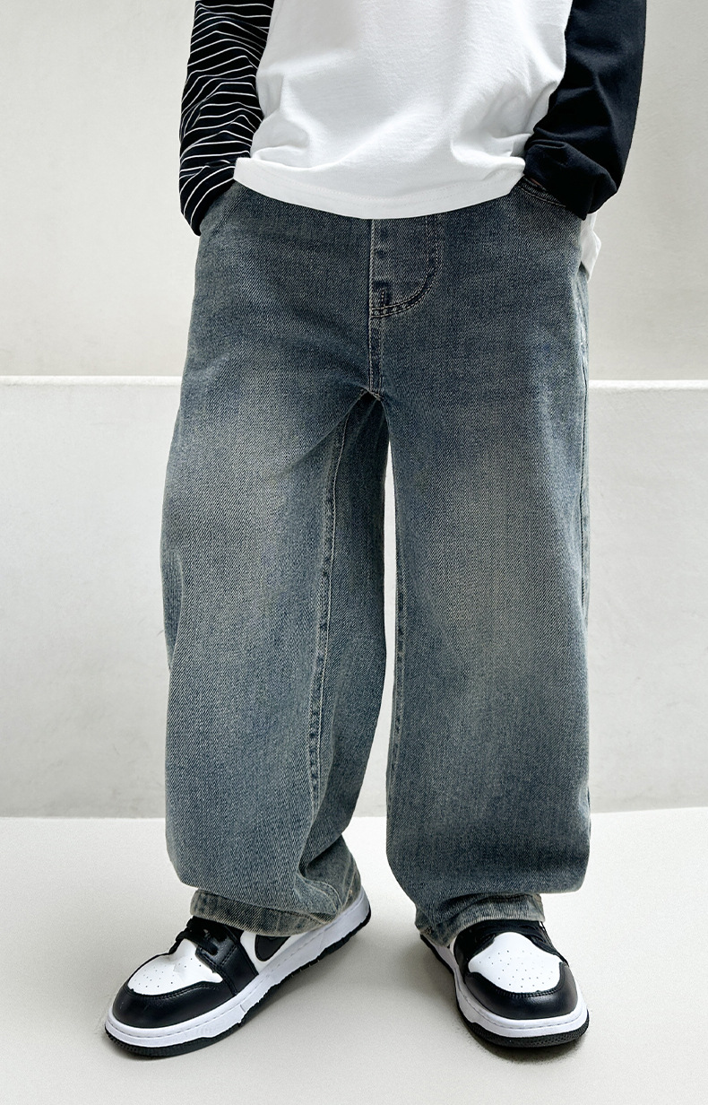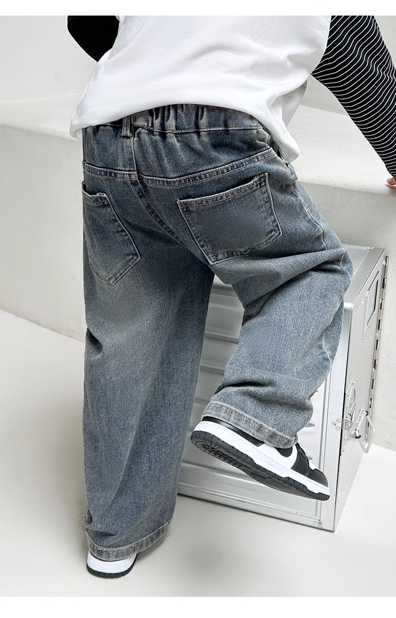 남아용 기모 바지, 일자 바지, 아동용 청바지, 와이드 팬츠, 2025년 신상품, 중대형 아동용 긴바지, 일체형 기모스토어 가기