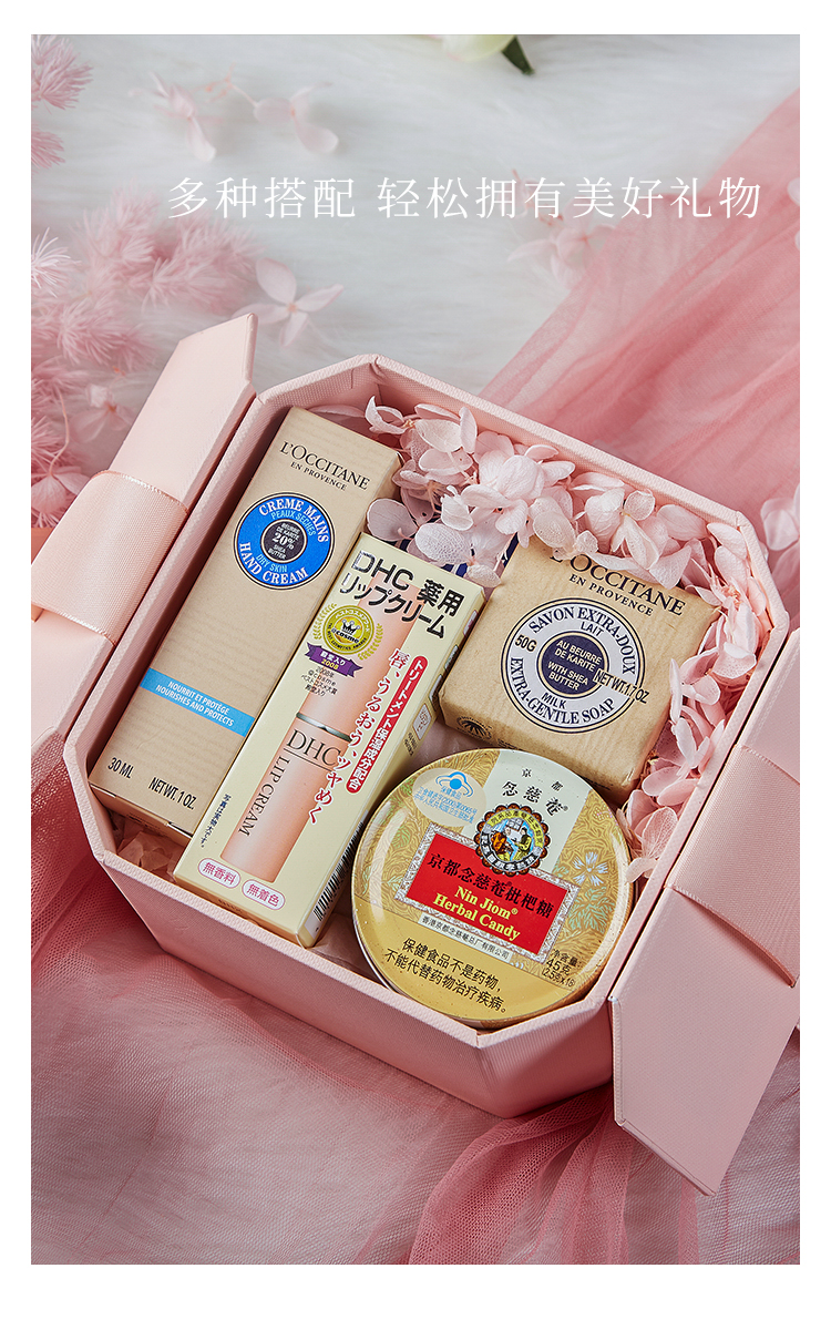• 록시땅 핸드크림 + 록시땅 클렌저*2 + DHC 립스틱 + 비누 (랜덤맛) - 15x15x10cm