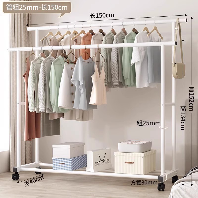 • 1.5m 화이트⭐25튜브 이중 극 두꺼운 풀리⭐이중 옷걸이♥베어링 용량 100kg .