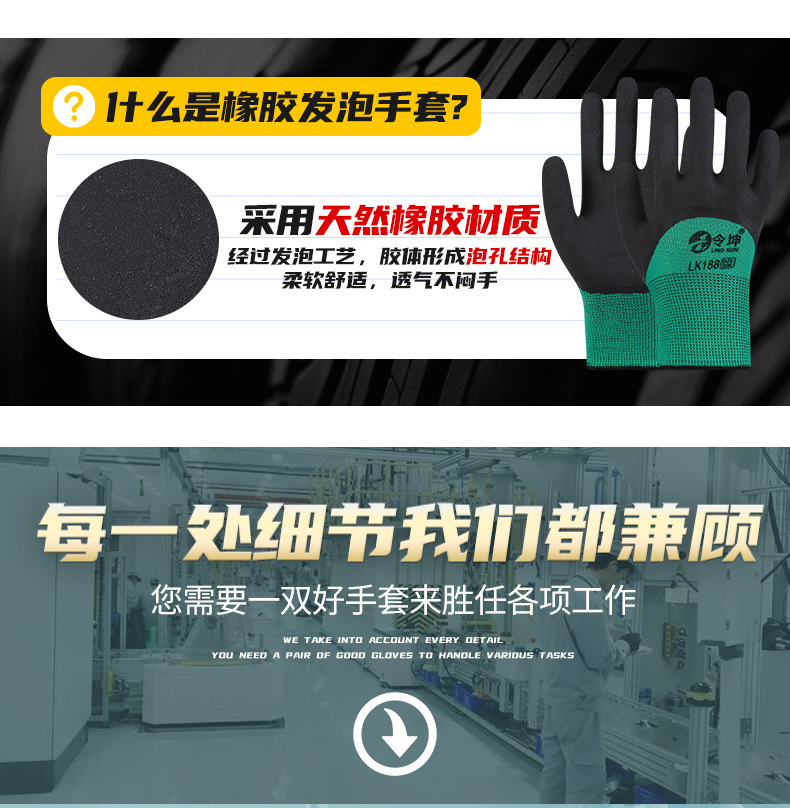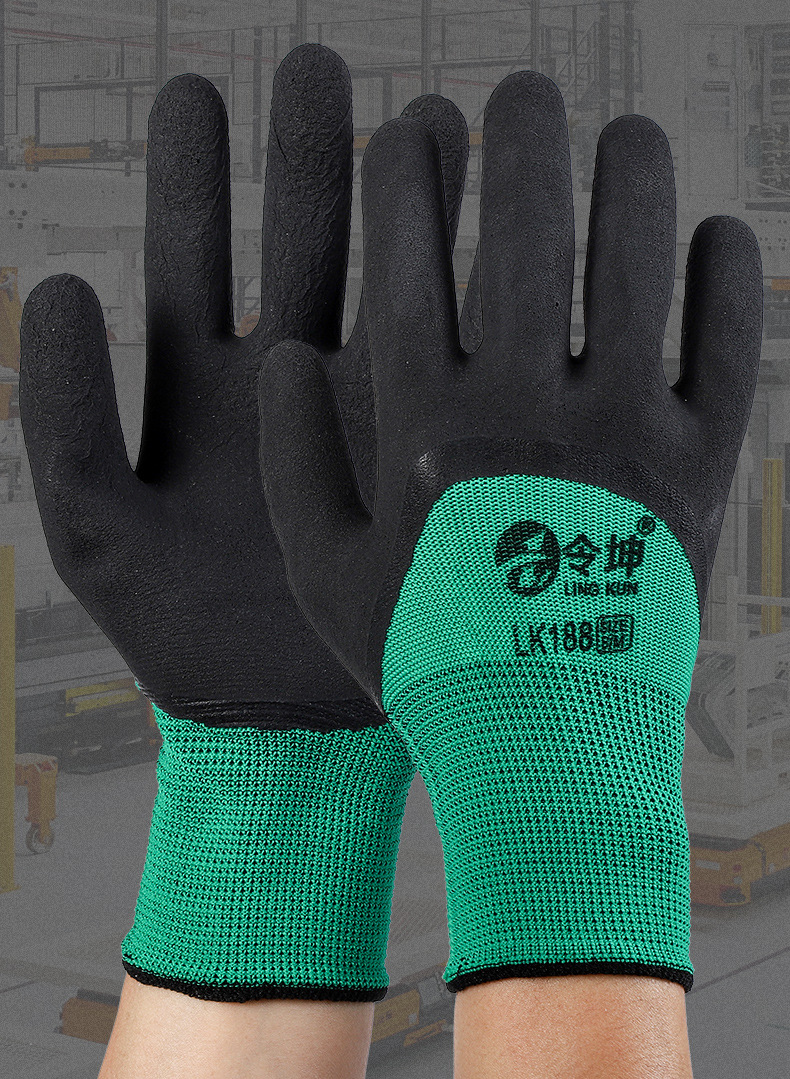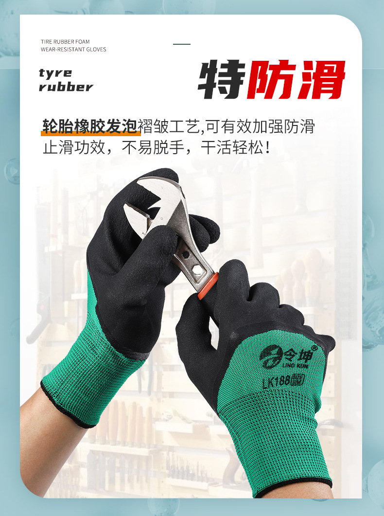 발포 LK188 안전 장갑 통기성 땀 흡수 라텍스 코팅 장갑 산업 작업 현장 미끄럼 방지