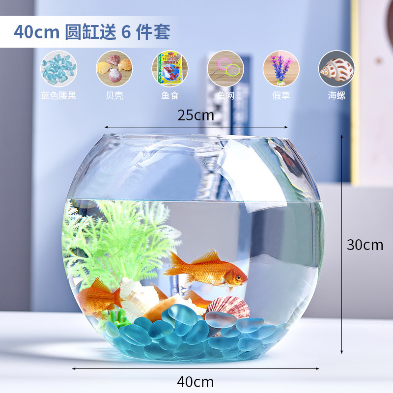 사무실 작은 물고기 탱크 두꺼운 투명 유리 거북이 탱크 거실 가정용 데스크탑 라운드 미니스토어 가기