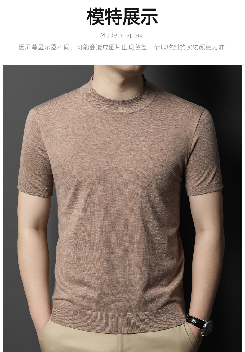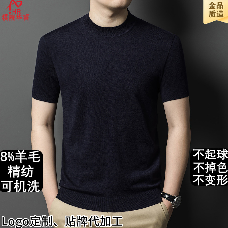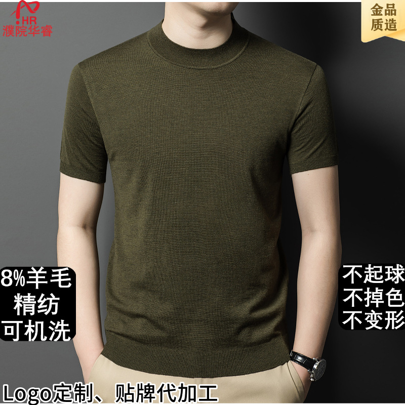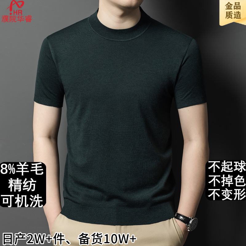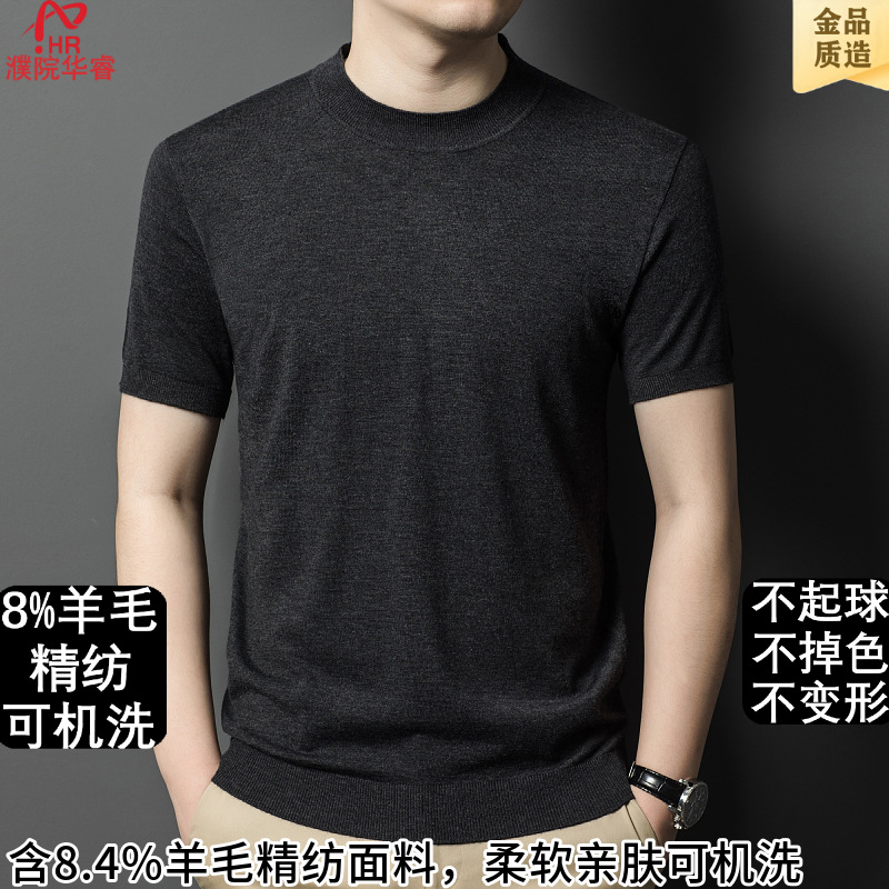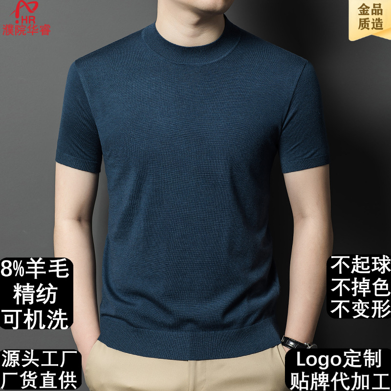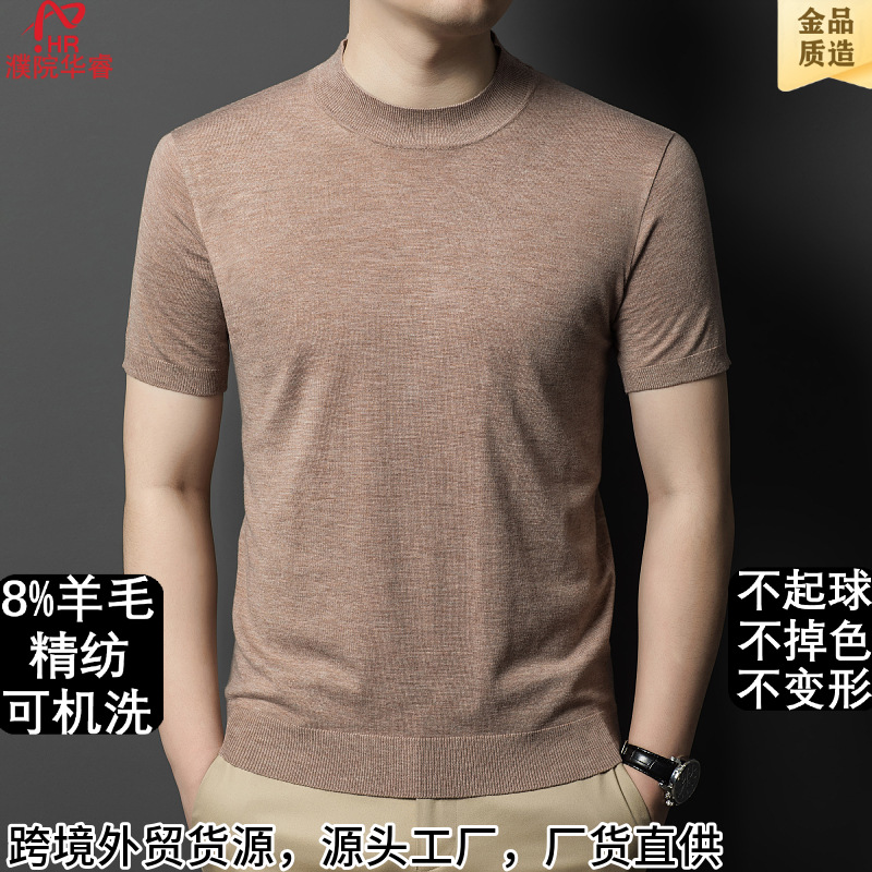8% 울 소재의 남성용 반팔 니트웨어, 크로스보더 무역용 라운드넥 솔리드 컬러 반팔 티셔츠, 남성 캐주얼 및 다용도스토어 가기