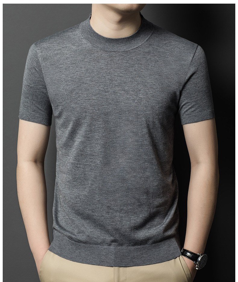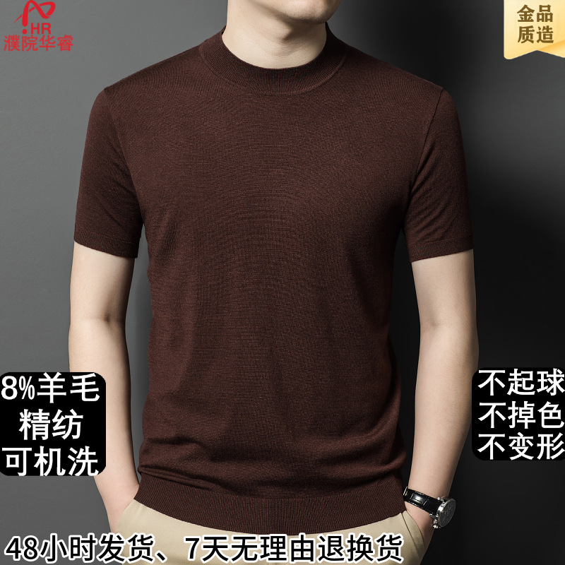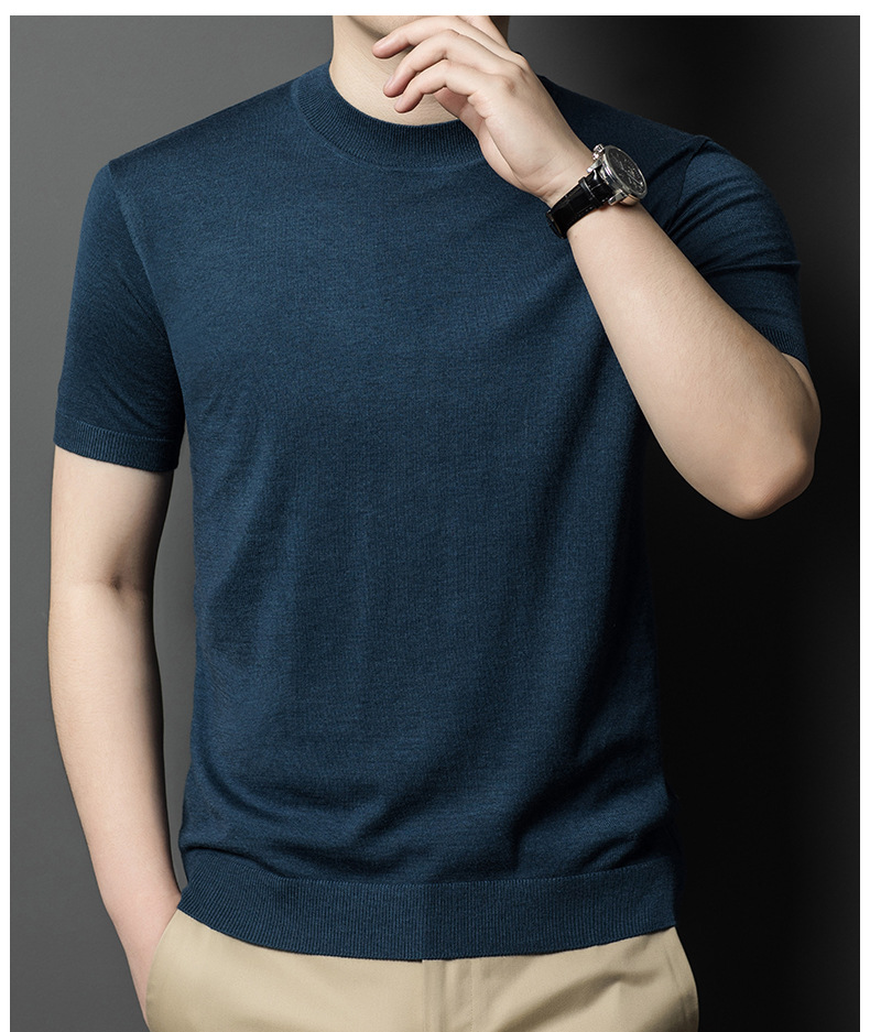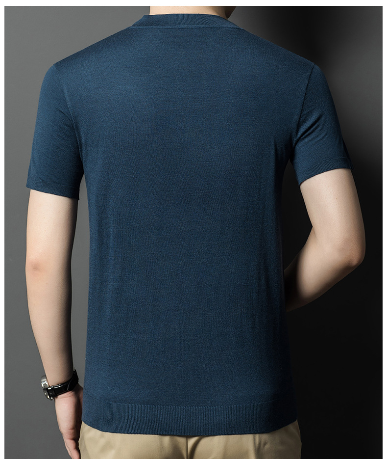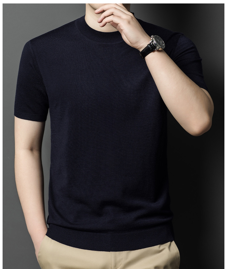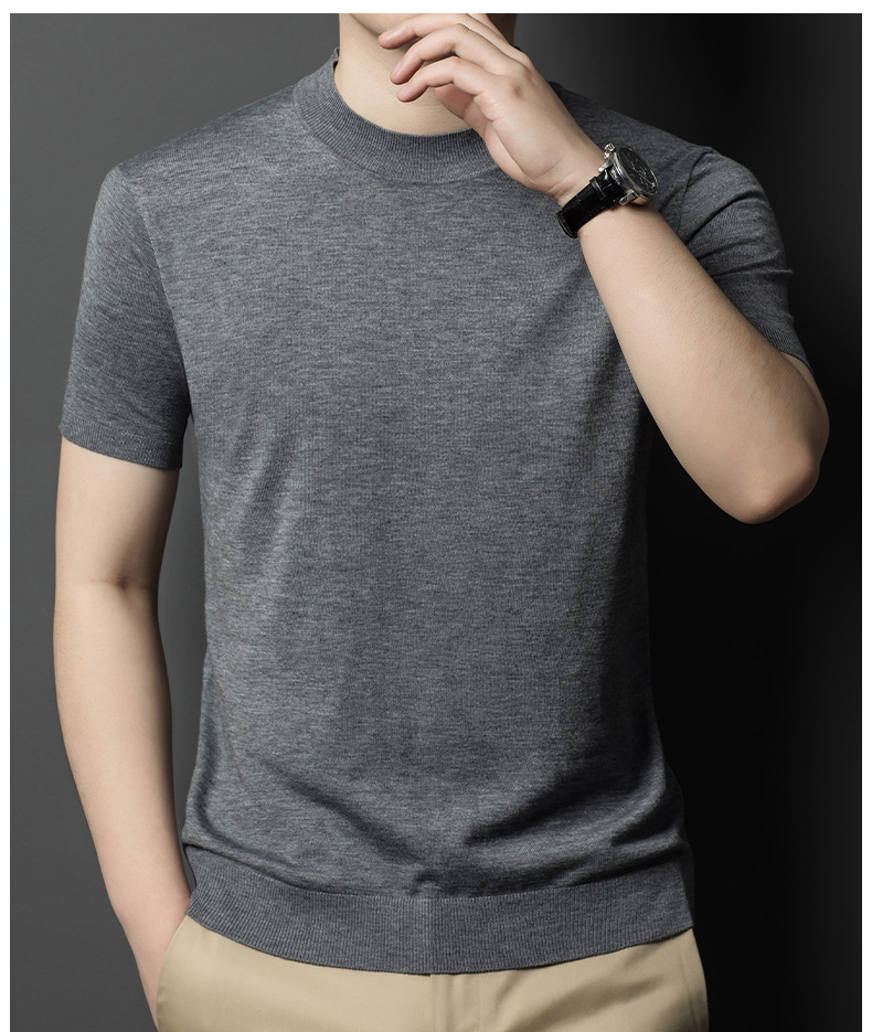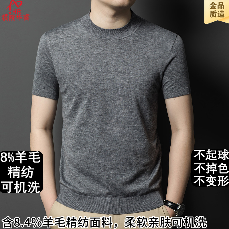 8% 울 소재의 남성용 반팔 니트웨어, 크로스보더 무역용 라운드넥 솔리드 컬러 반팔 티셔츠, 남성 캐주얼 및 다용도스토어 가기