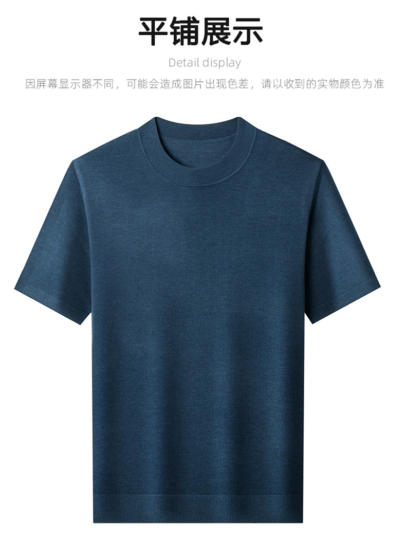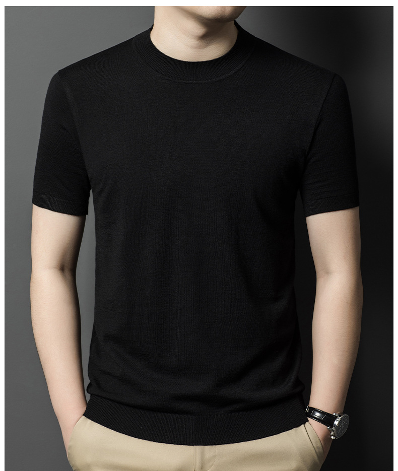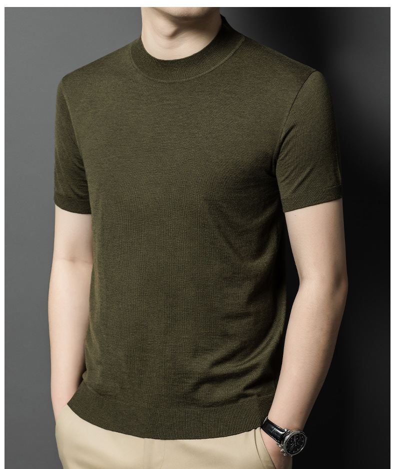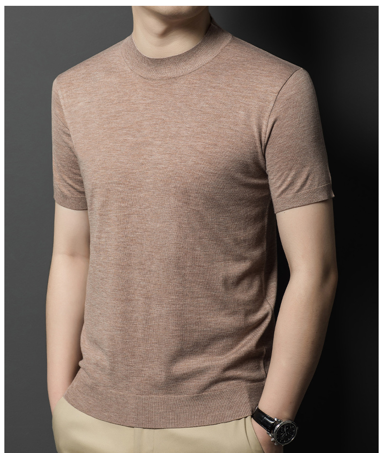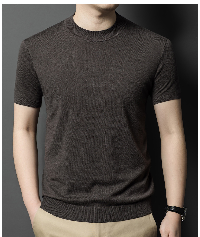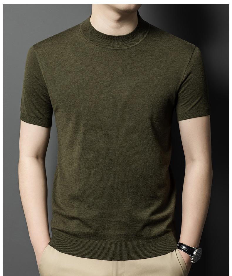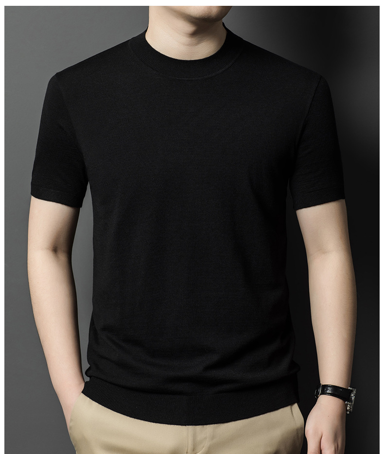8% 울 소재의 남성용 반팔 니트웨어, 크로스보더 무역용 라운드넥 솔리드 컬러 반팔 티셔츠, 남성 캐주얼 및 다용도스토어 가기