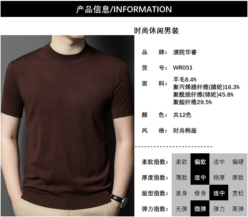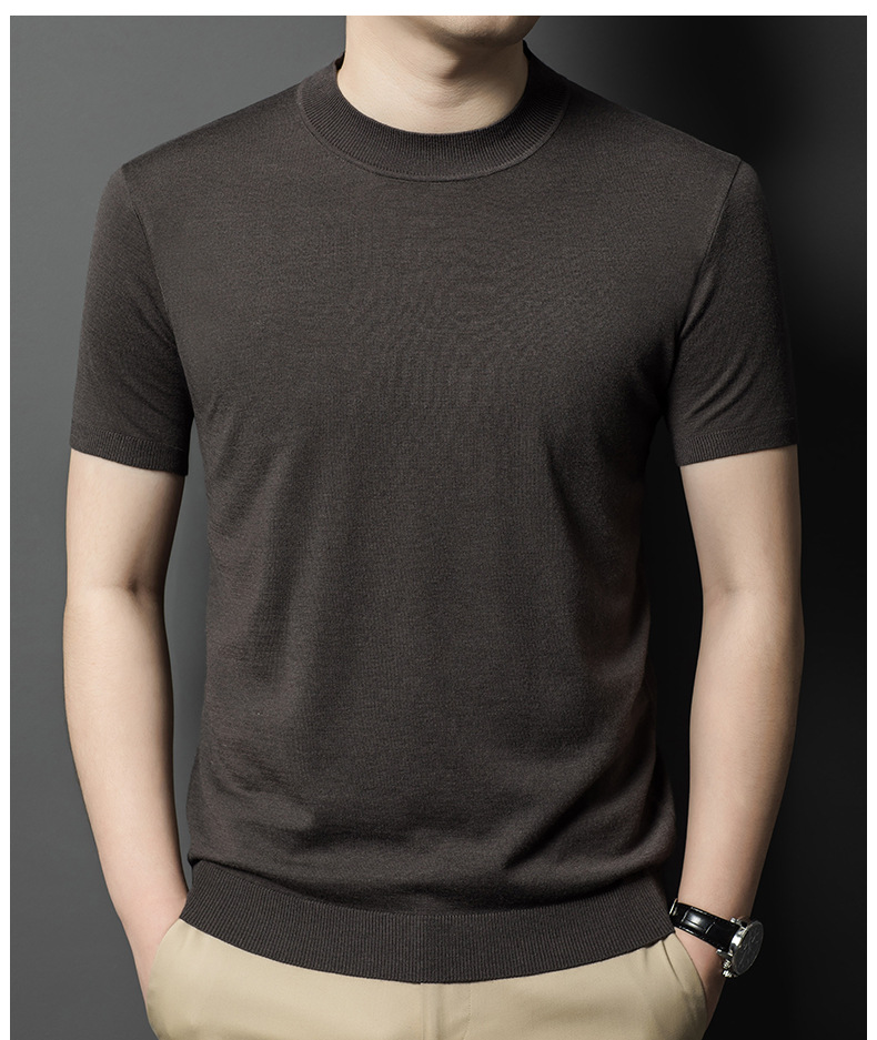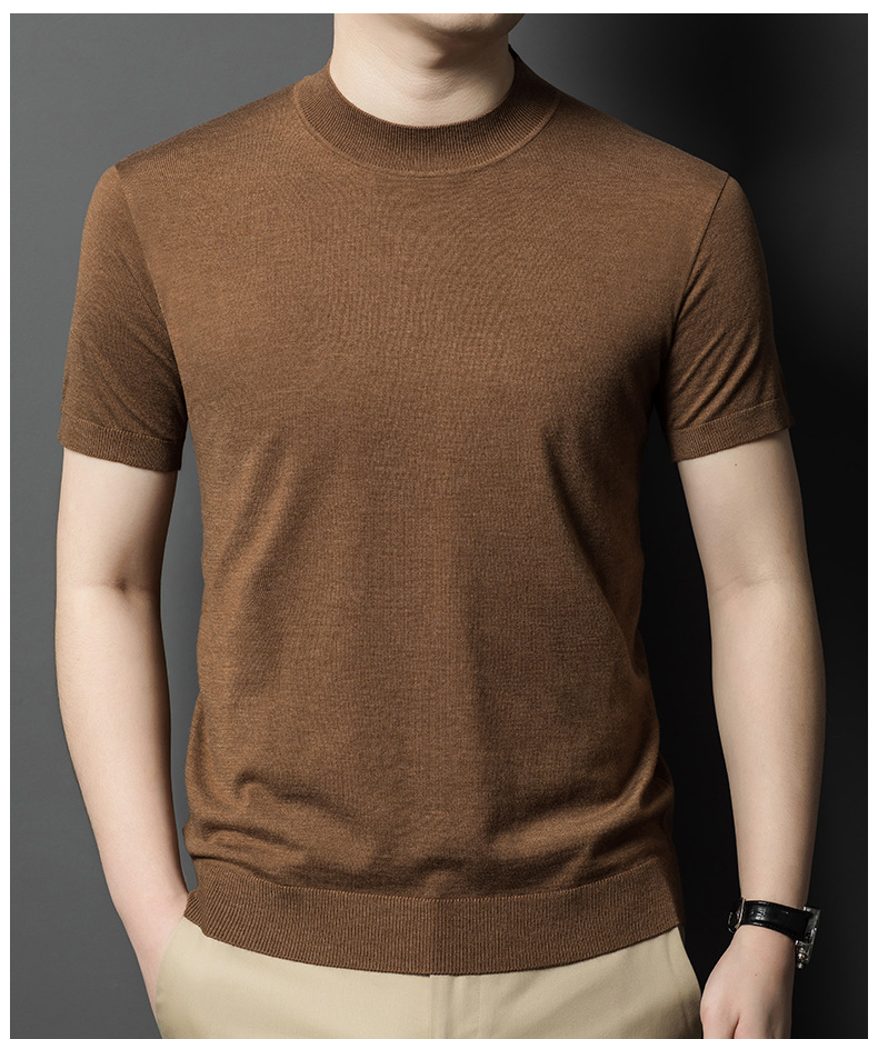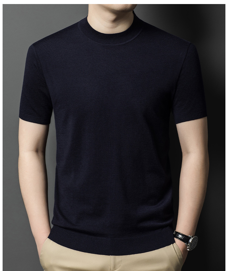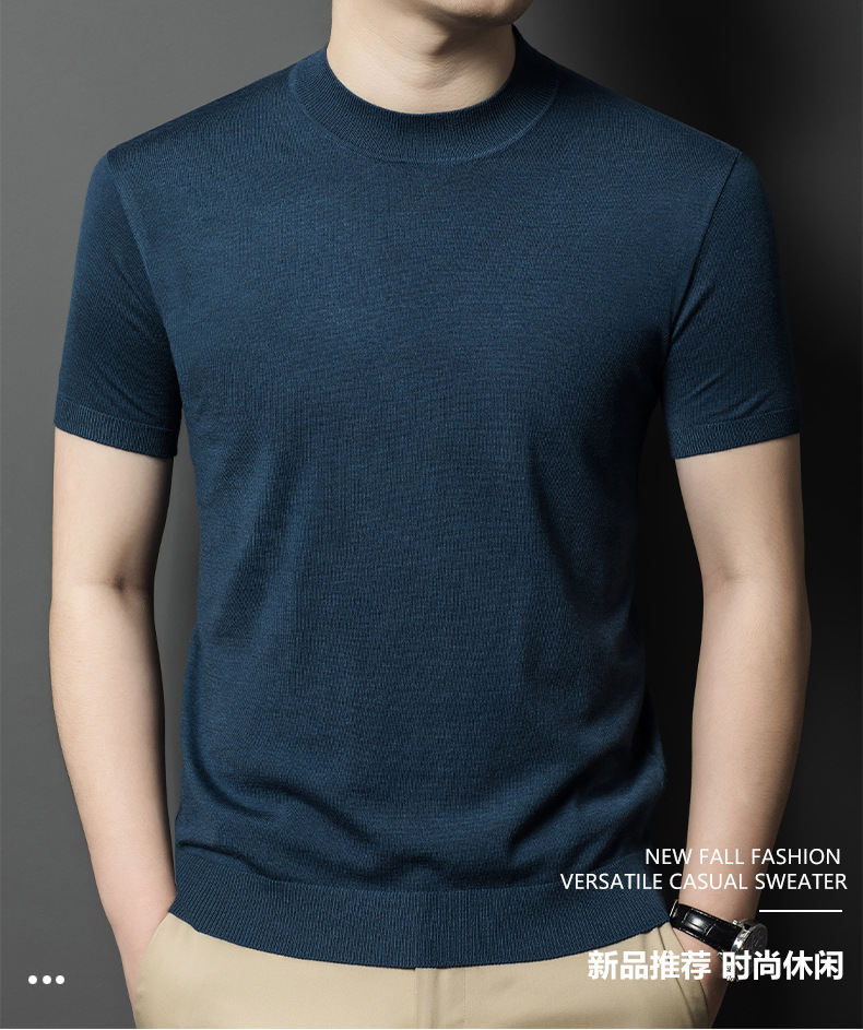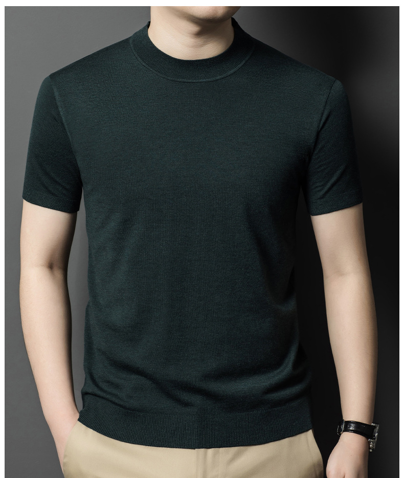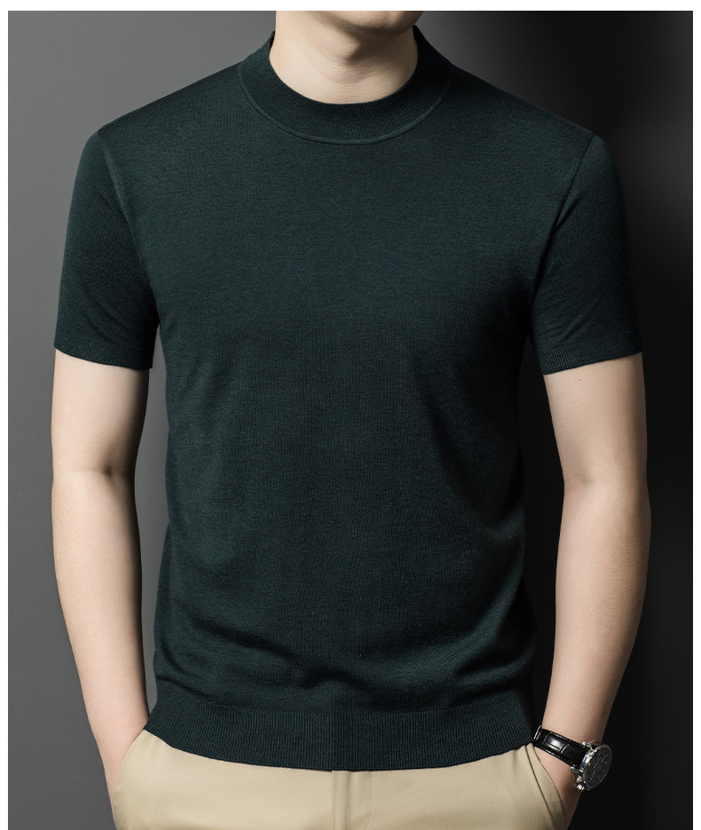 8% 울 소재의 남성용 반팔 니트웨어, 크로스보더 무역용 라운드넥 솔리드 컬러 반팔 티셔츠, 남성 캐주얼 및 다용도스토어 가기