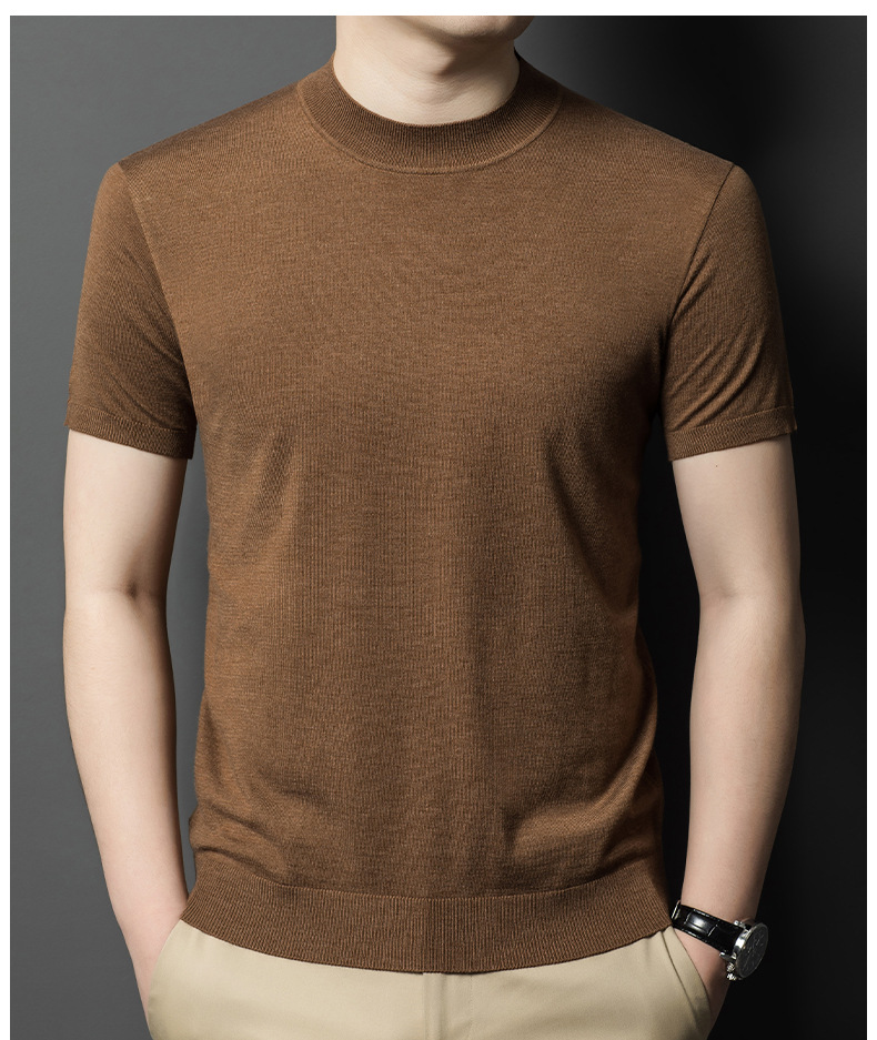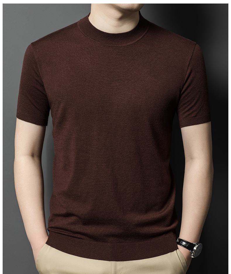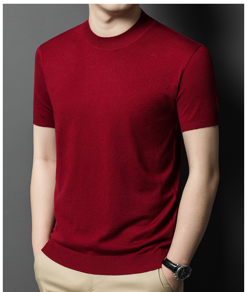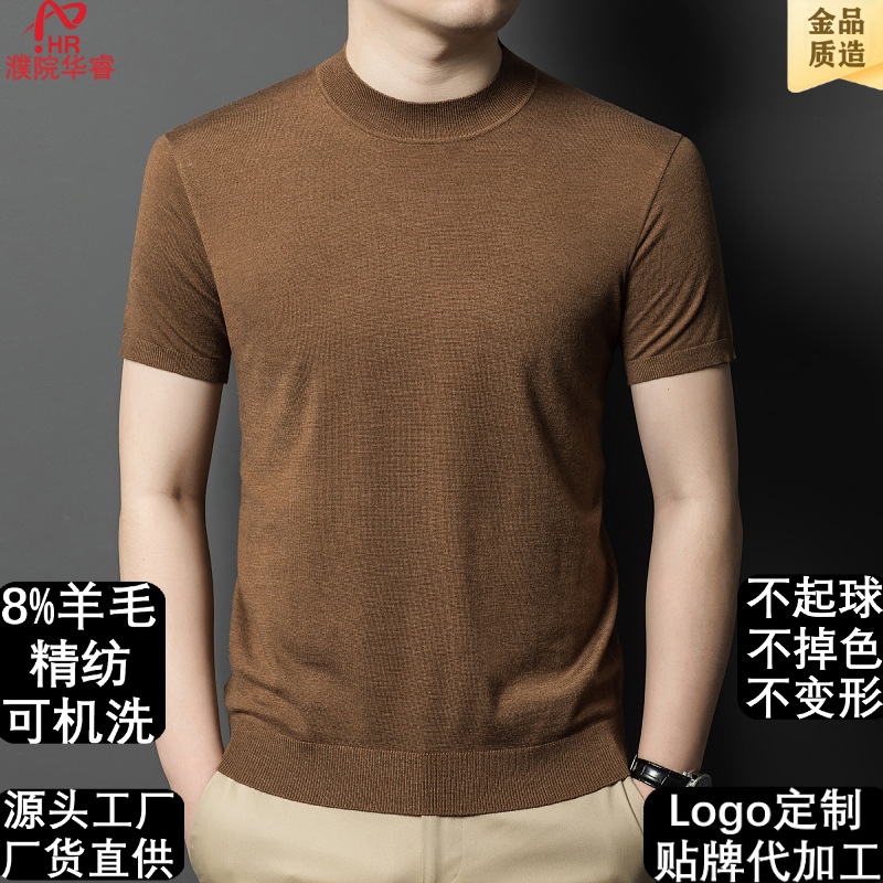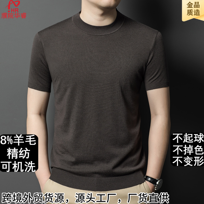 8% 울 소재의 남성용 반팔 니트웨어, 크로스보더 무역용 라운드넥 솔리드 컬러 반팔 티셔츠, 남성 캐주얼 및 다용도