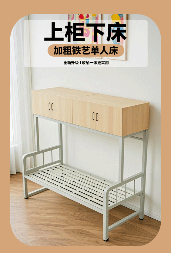 렌탈 룸 싱글 침대는 목재 캐비닛 높은 침대 직원 기숙사 싱글 침대와 통합 된 아파트 침대를 보관할 수 있습니다.스토어 가기