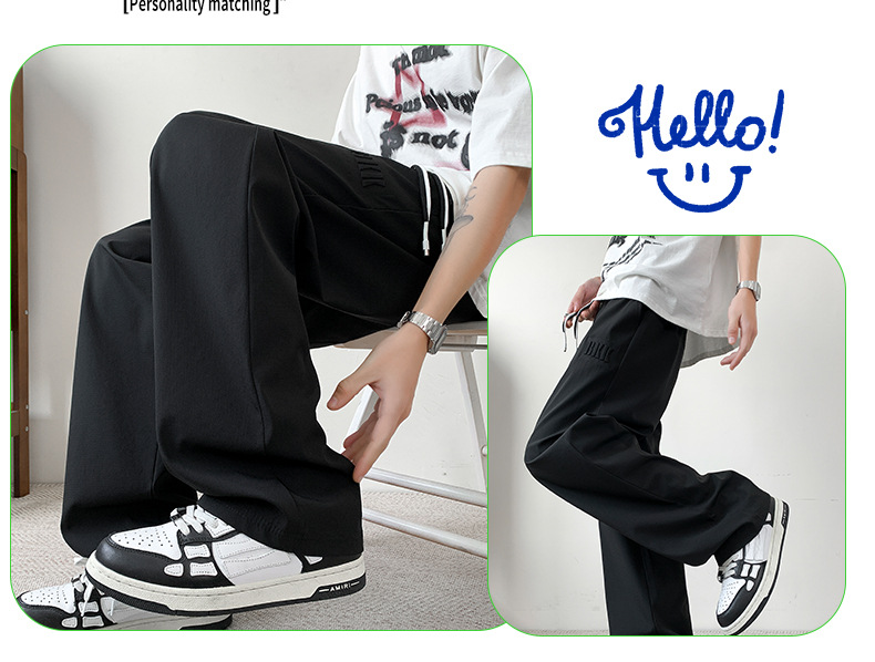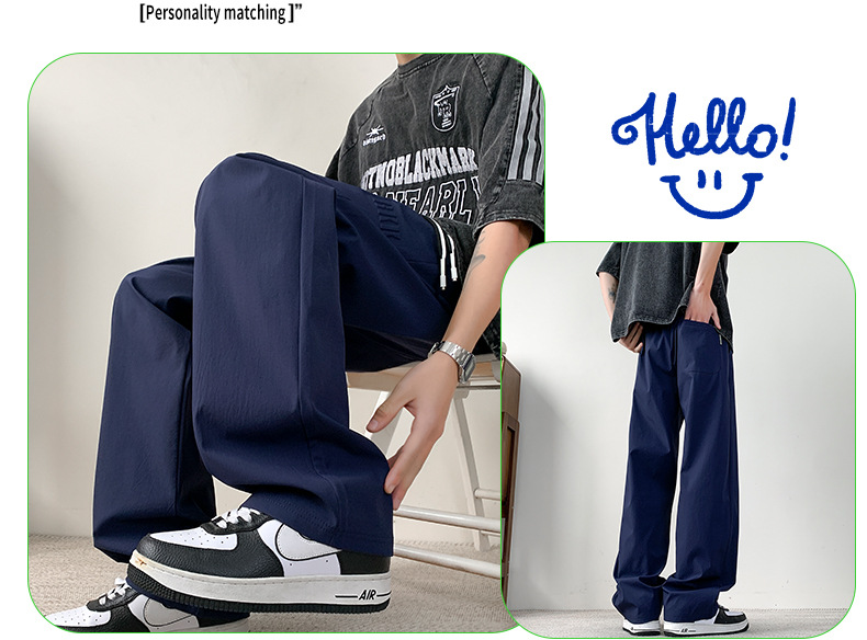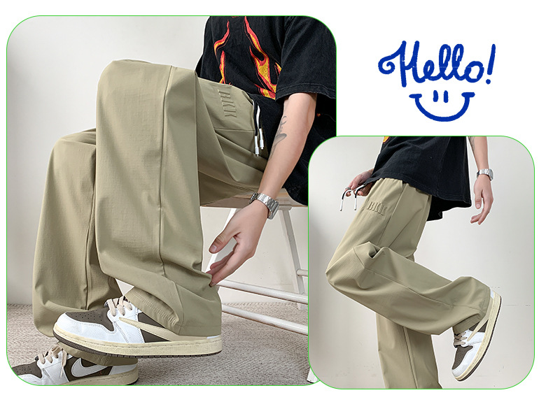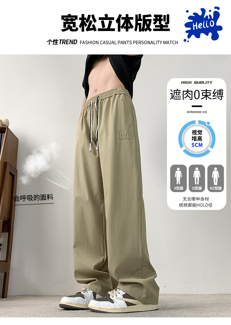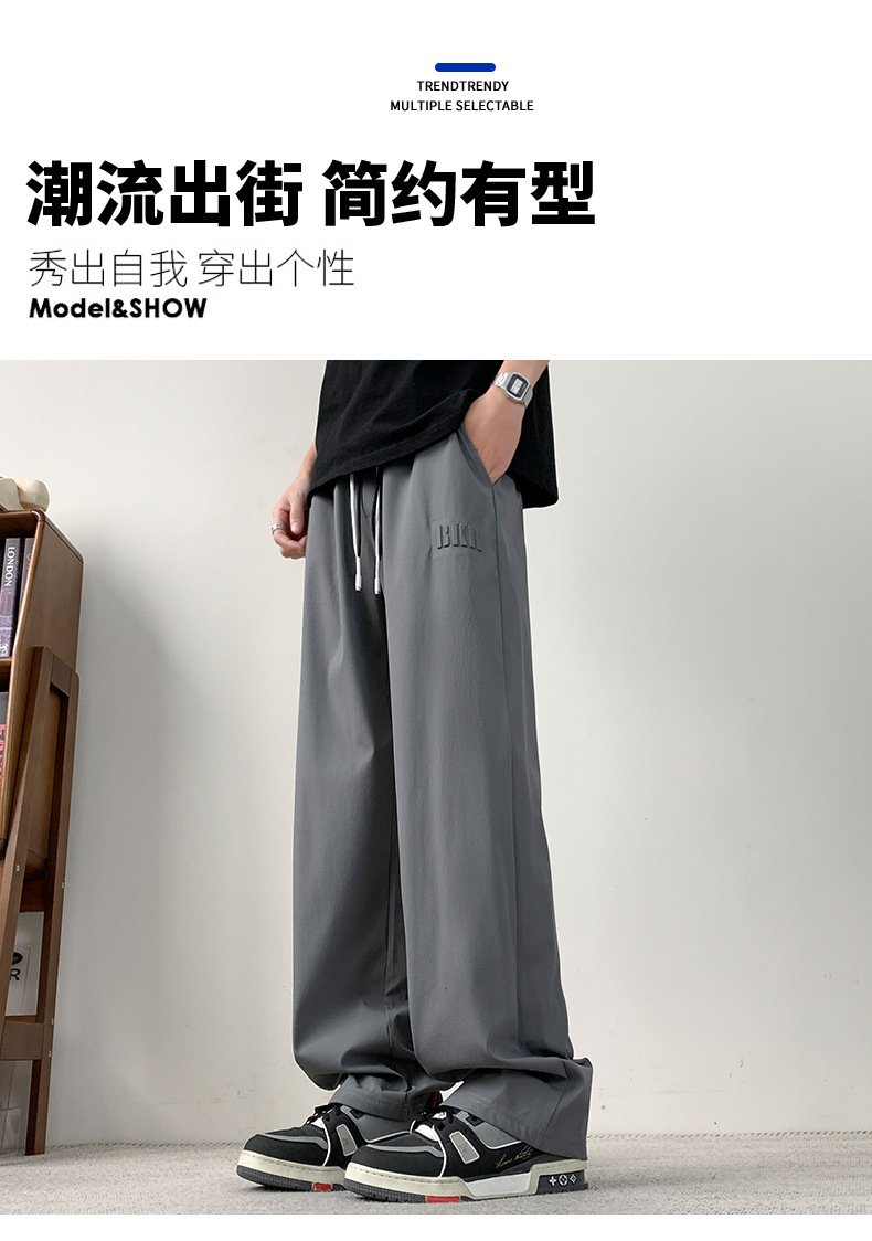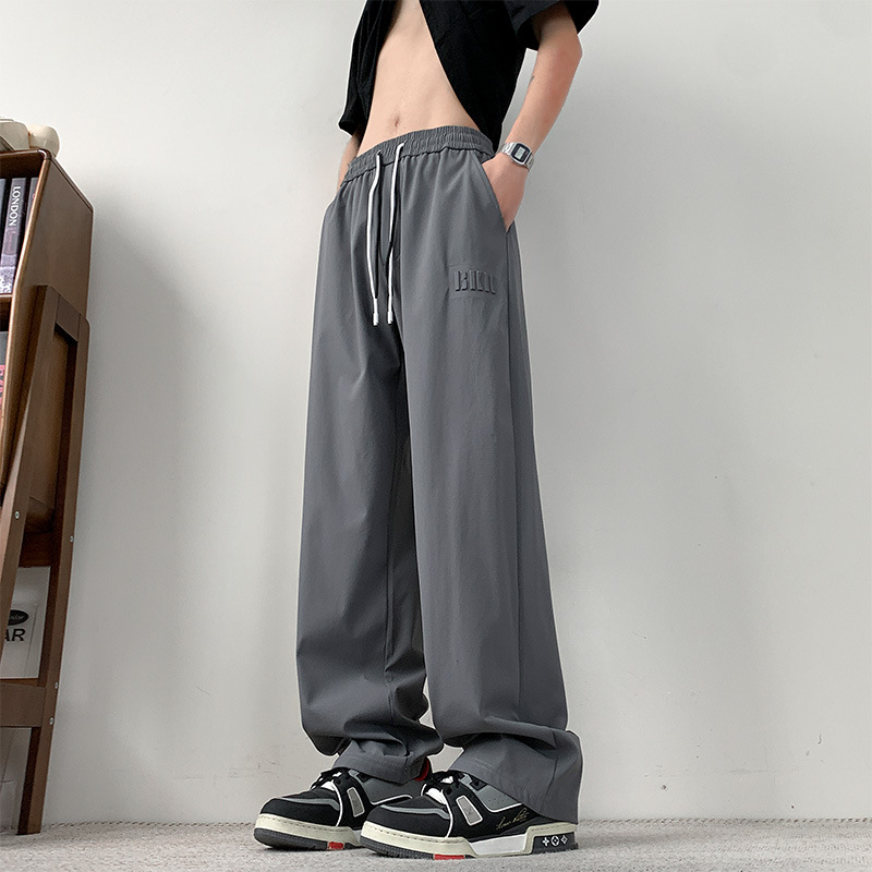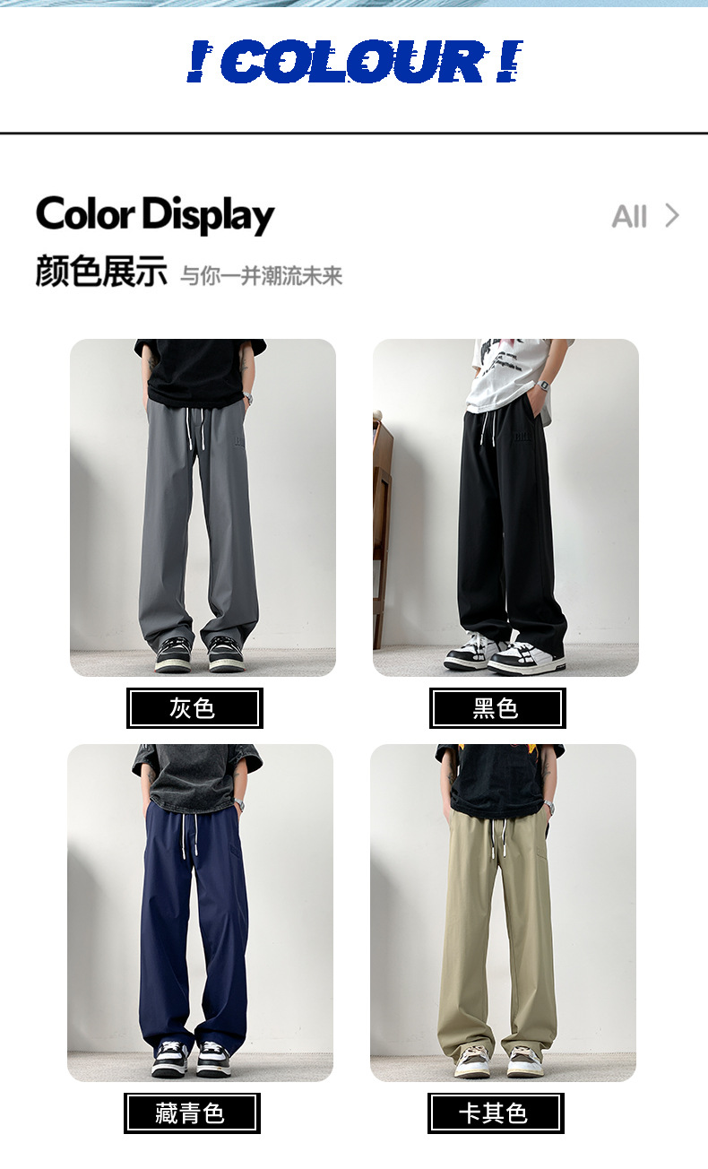 청소년 학생용 고품질 대형 아이스 실크 팬츠 남성 여름용 얇은 속건 스포츠 팬츠 스트레이트 핏 루즈핏 롱 팬츠스토어 가기