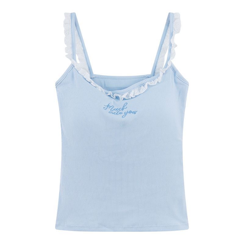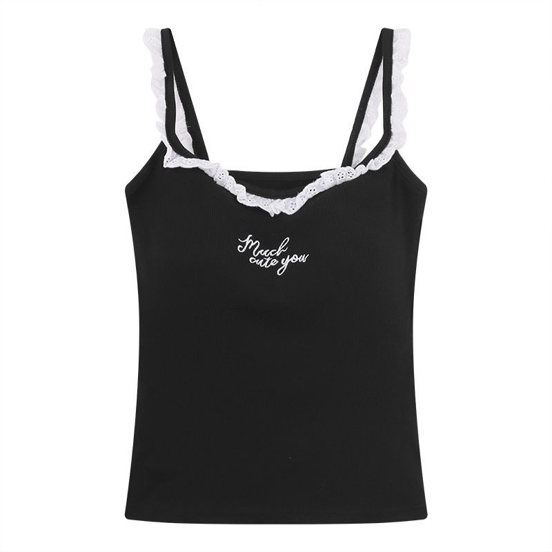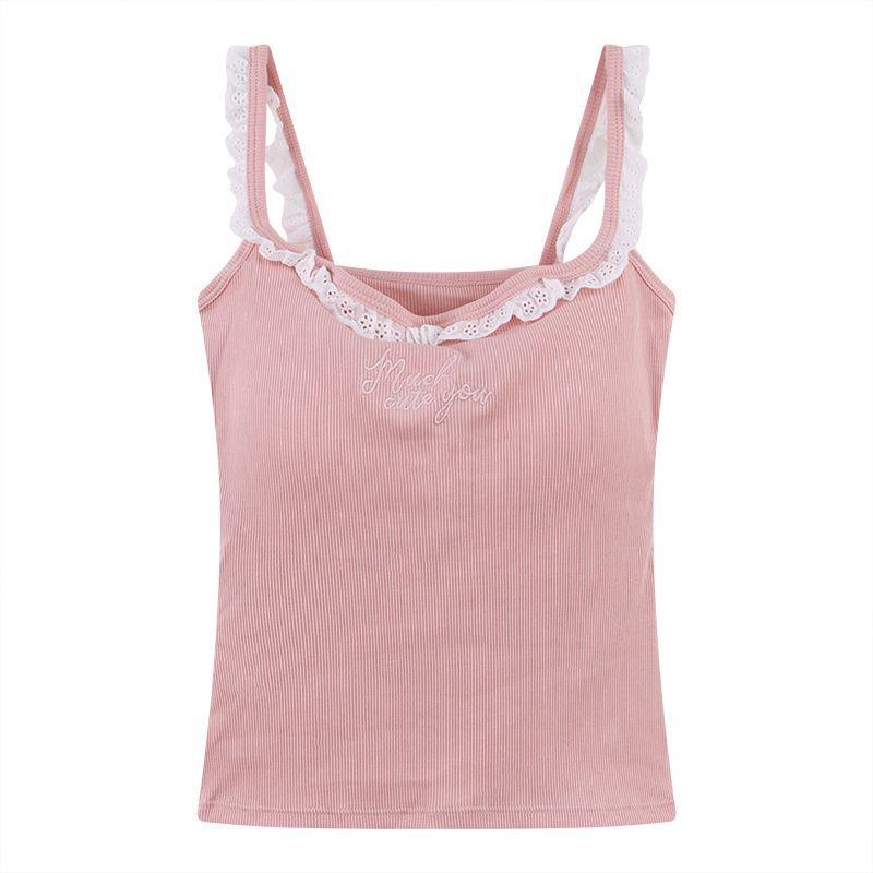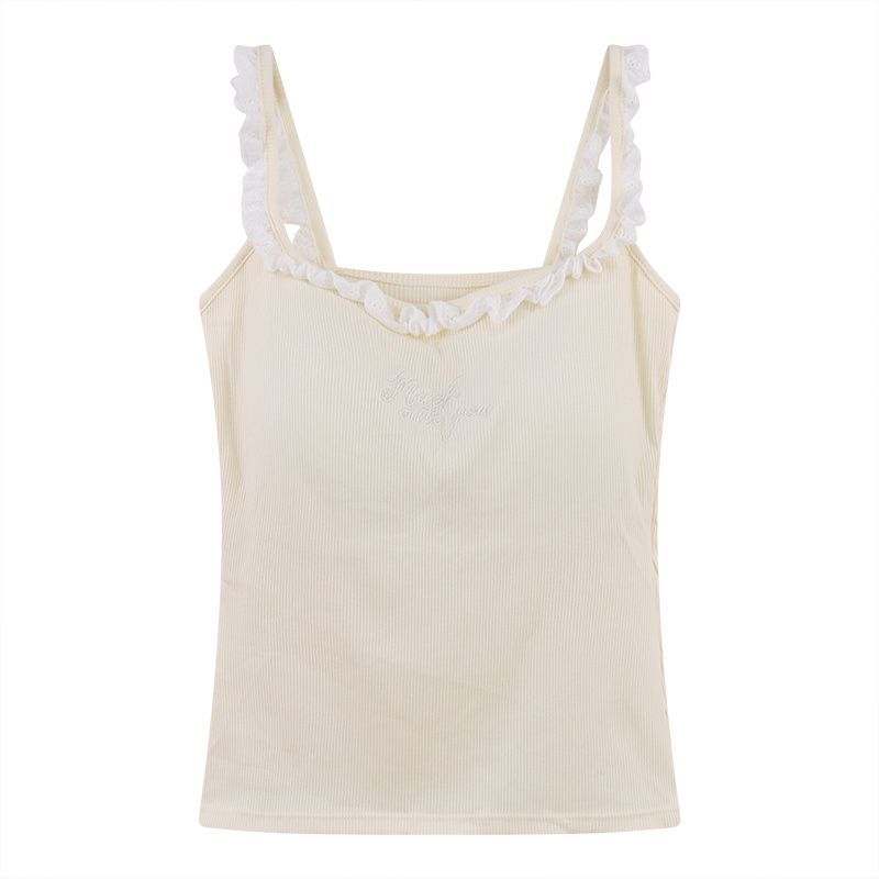 순수한 욕망 레이스 자수 카미솔 여성 벨트 가슴 패드 내부 입고 아름다운 뒷면 디자인 센스 슬림 핏 슬리밍 탑