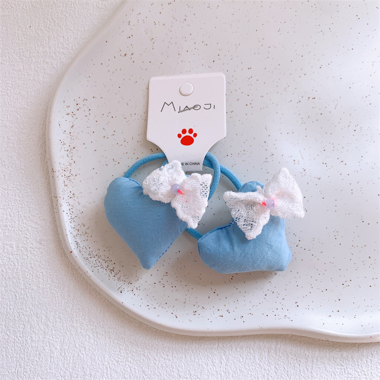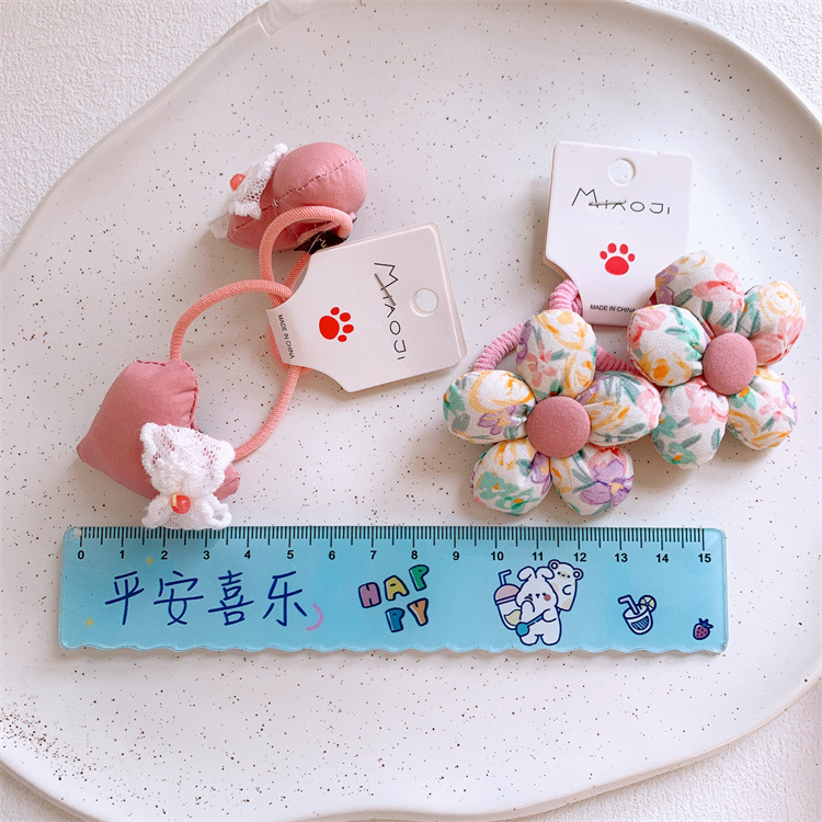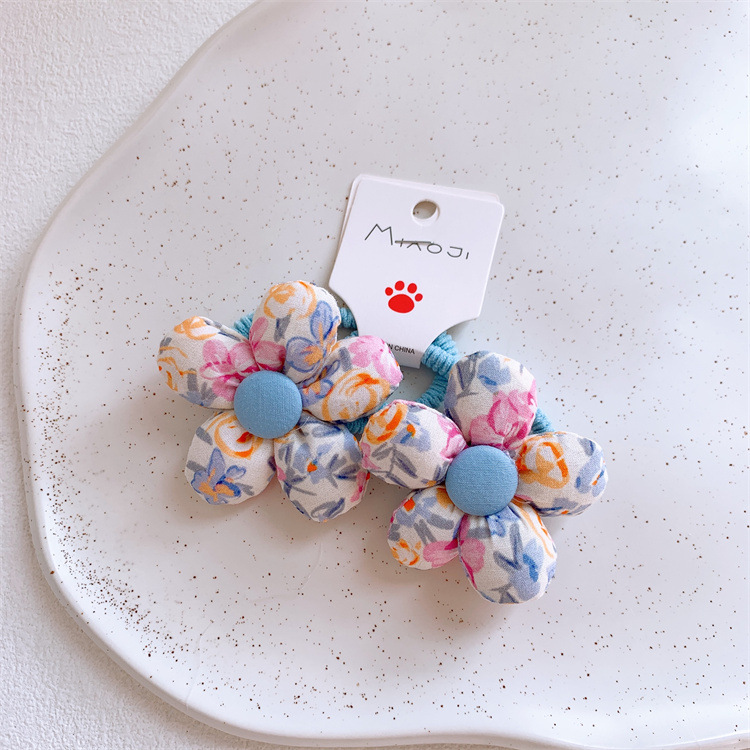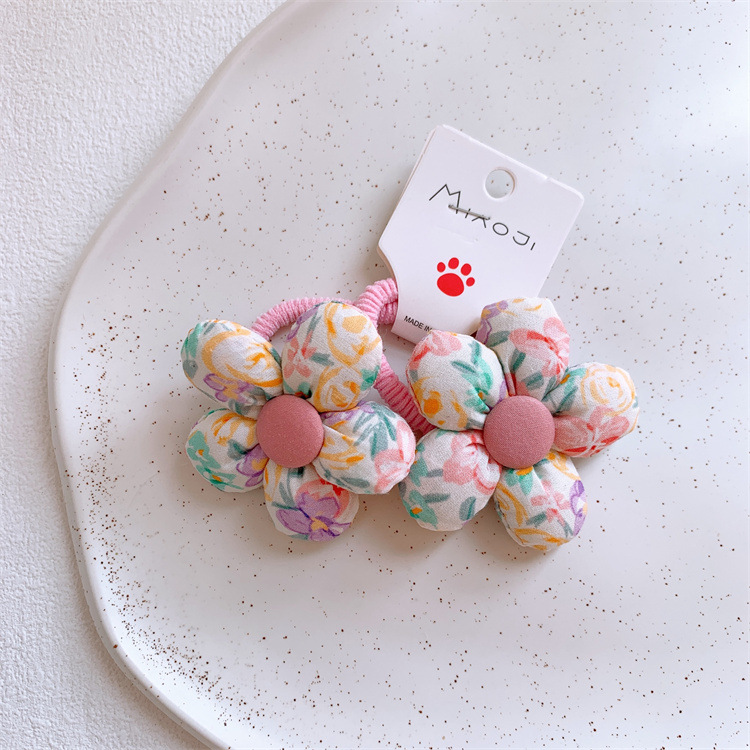 새로운 어린이 직물 꽃 활 머리 반지 달콤한 소녀 꽃 쌍 로프 머리 스트랩 머리 스트랩 머리 로프 로프