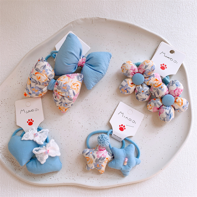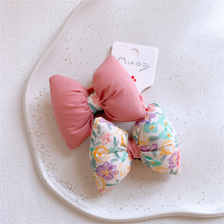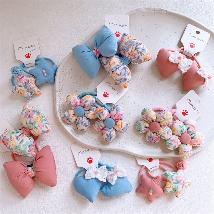 새로운 어린이 직물 꽃 활 머리 반지 달콤한 소녀 꽃 쌍 로프 머리 스트랩 머리 스트랩 머리 로프 로프스토어 가기