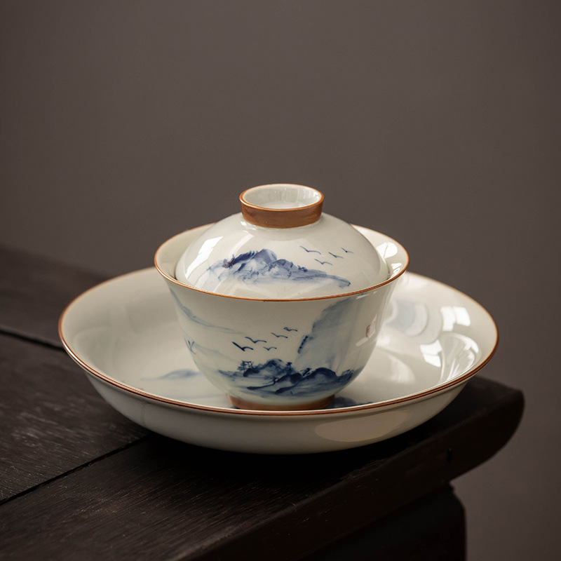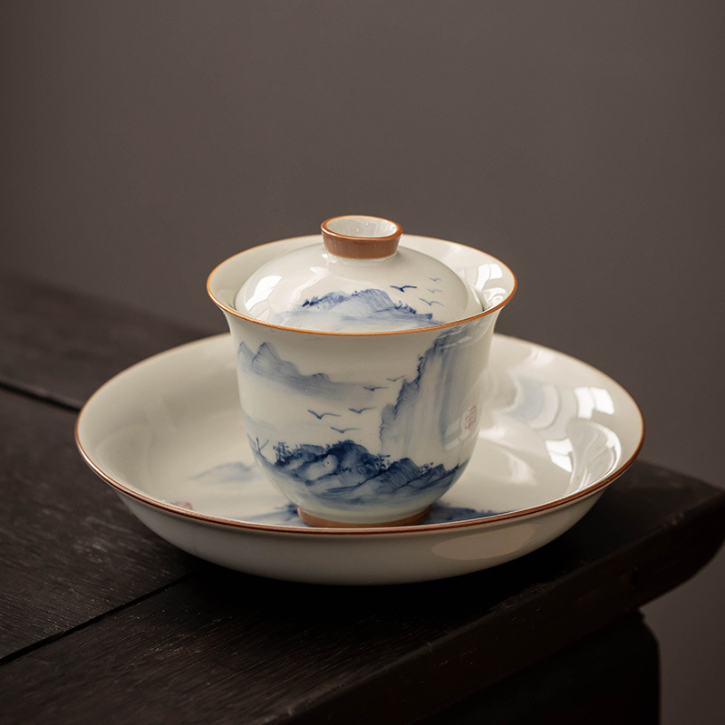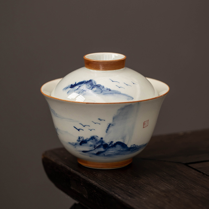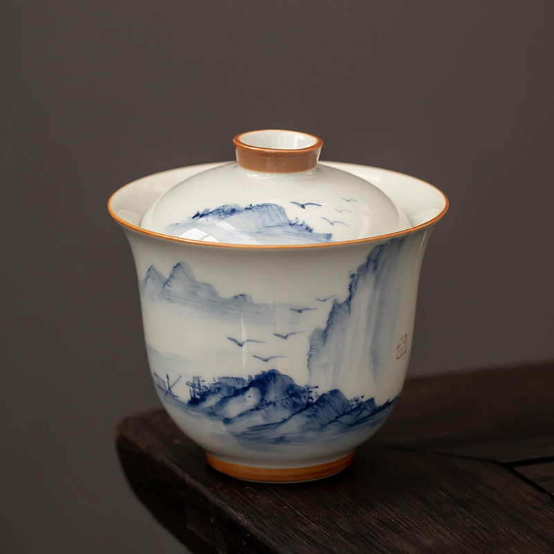 손으로 그린 Geyao 3 캡 그릇 큰 단일 가정용 세라믹 티 컵 뚜껑 쿵푸 티 세트 티 그릇스토어 가기