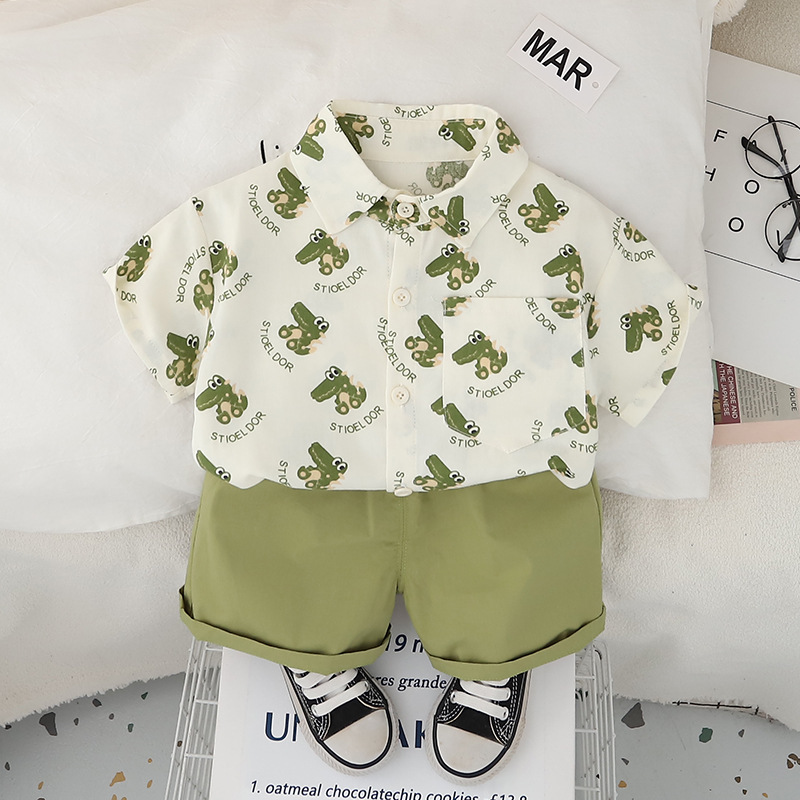 소년 여름 옷 세트 2025 새로운 아기 여름 만화 셔츠 짧은 소매 작은 소년 여름 어린이 옷 유행