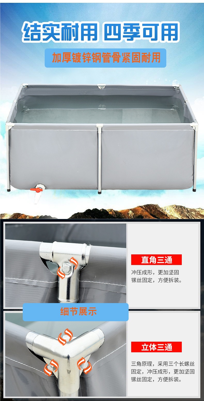 • 블루 200*200*60CM에는 브래킷과 물 배출구가 포함되어 있습니다. 녹색 또는 회색을 원하시면 준비하십시오.