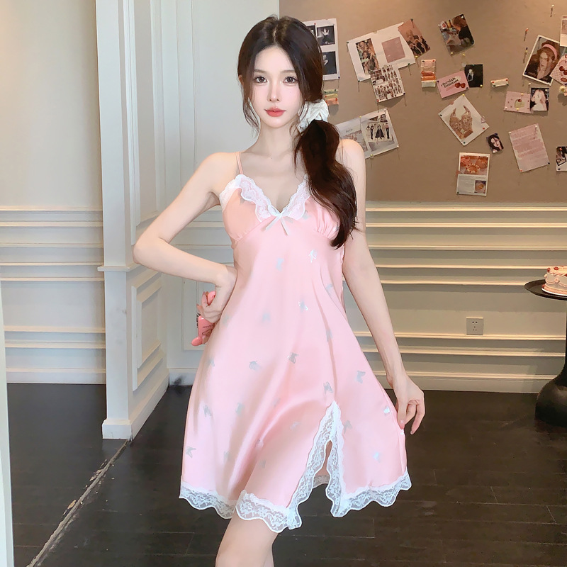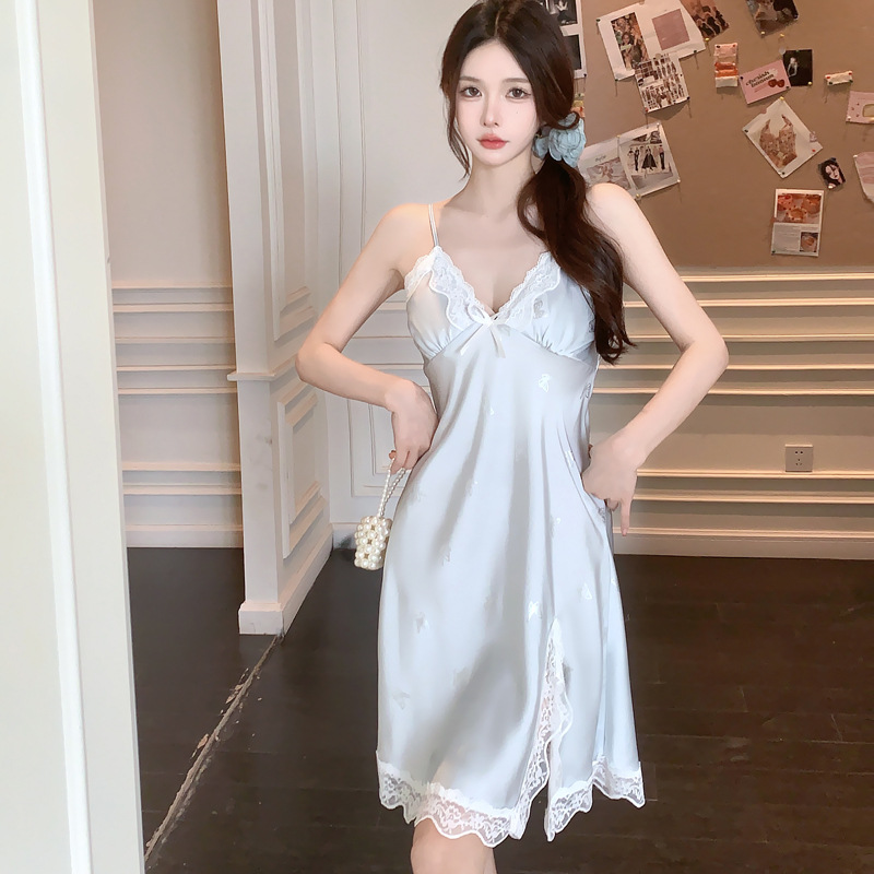 실버 나비 여성의 봄과 여름 새로운 아이스 실크 파자마 얇은 섹시한 잠옷 슬링 투피스 배스 로브 라이브 다이파스토어 가기