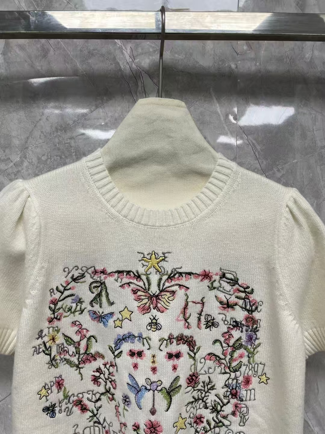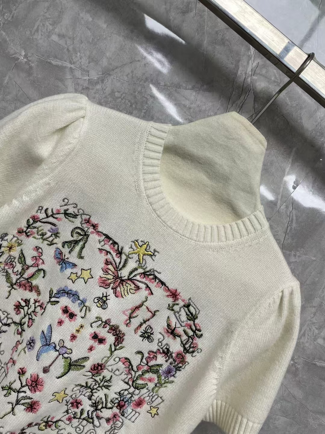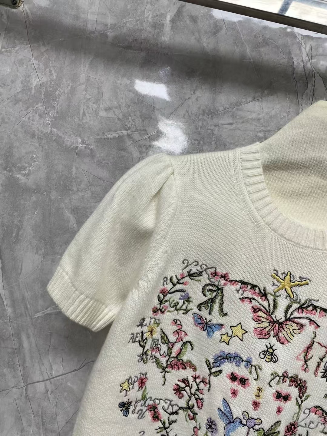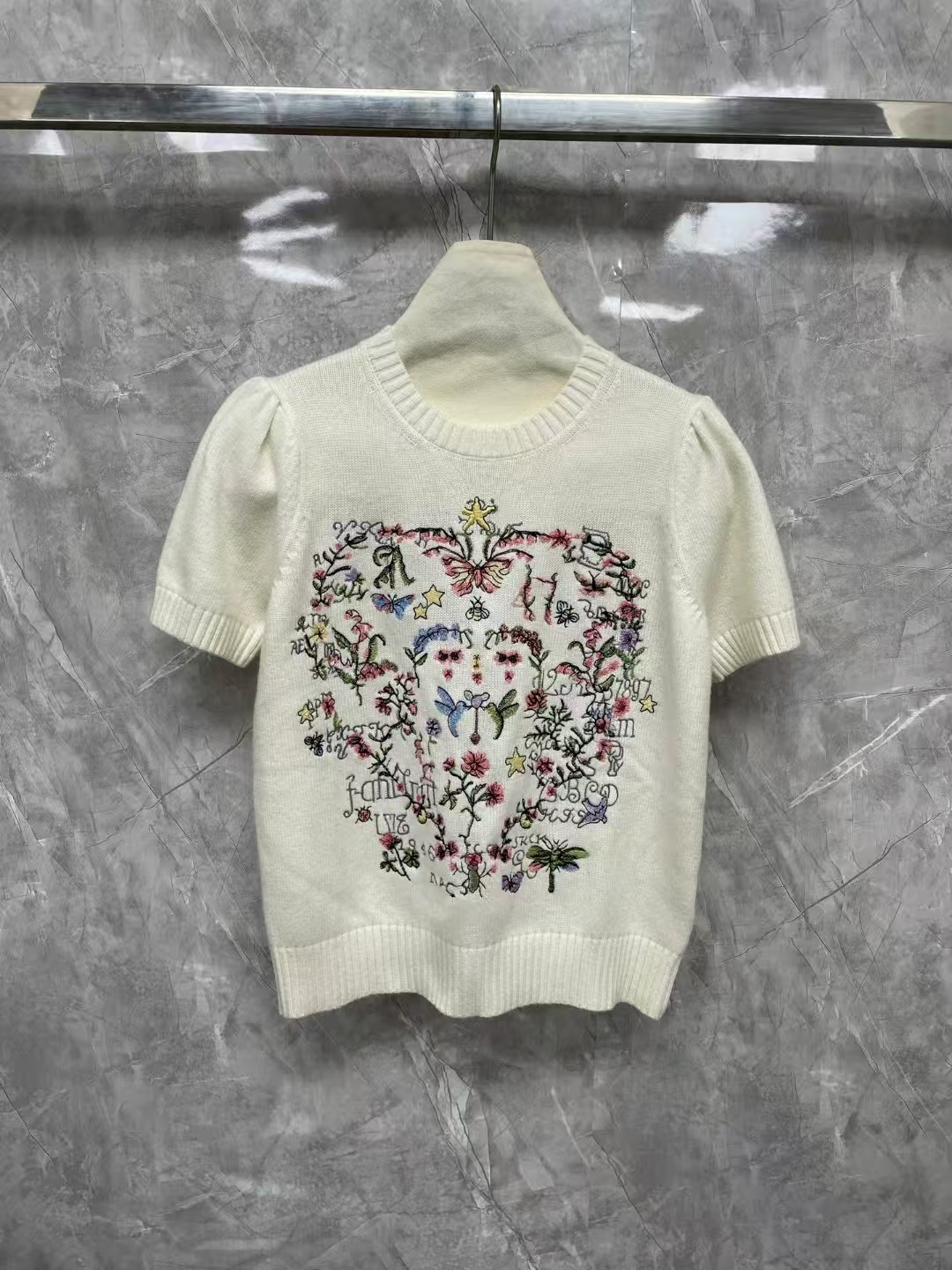 비 시장 상품 고급 여성 의류 xiaoxiang 바람 이른 봄 모네 정원 꽃 얇은 스웨터 짧은 소매 여성의 올바른 버전