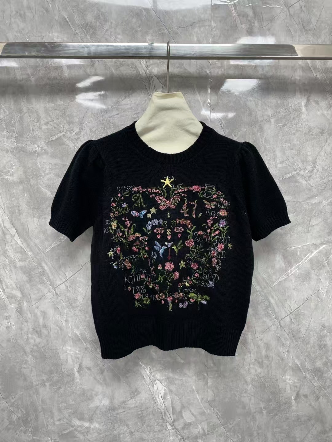 비 시장 상품 고급 여성 의류 xiaoxiang 바람 이른 봄 모네 정원 꽃 얇은 스웨터 짧은 소매 여성의 올바른 버전스토어 가기