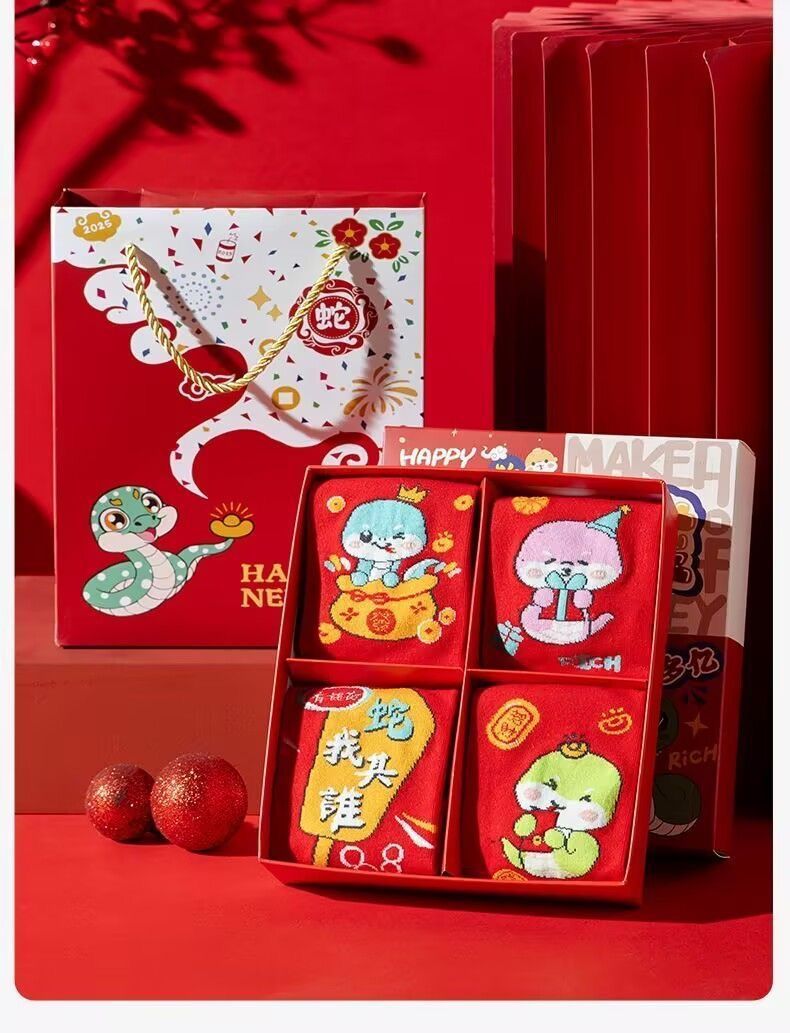 2025 년 스네이크 벤밍니언 레드 양말 뱀 남녀 신년 양말 커플 웨딩 레드 양말 도매스토어 가기