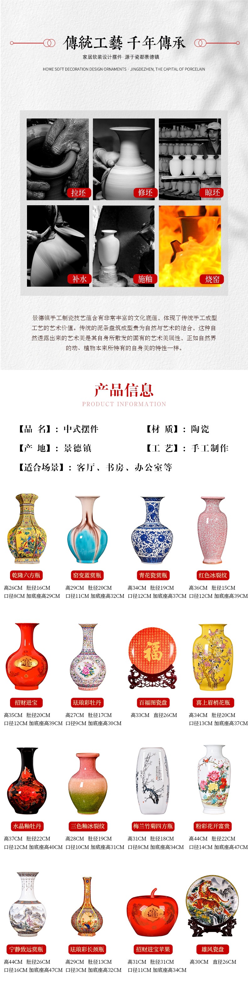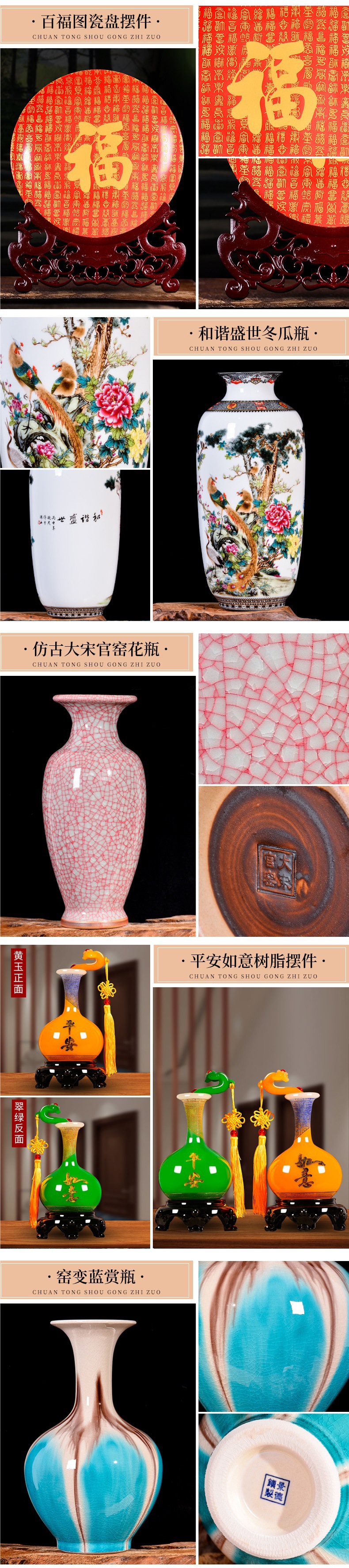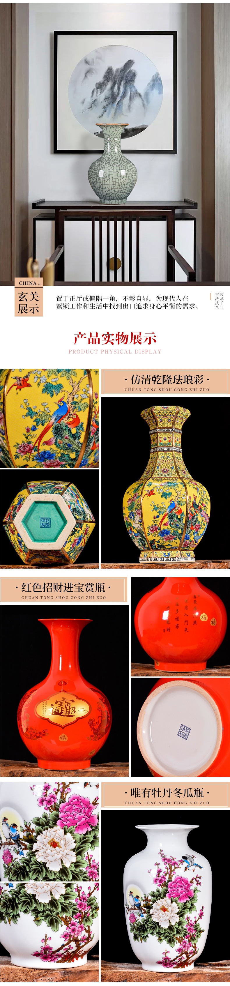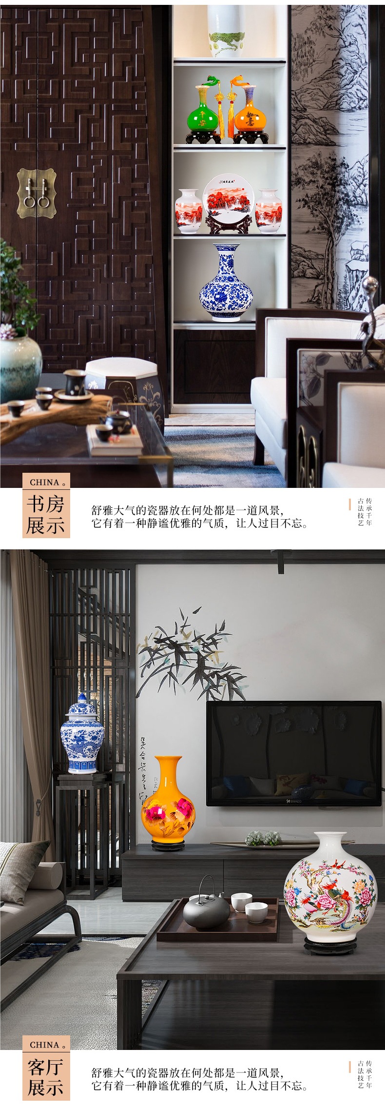 Jingdezhen 세라믹 꽃병 장식 홈 장식 새로운 중국 스타일 거실 TV 캐비닛 복도 골동품 랙 공예스토어 가기