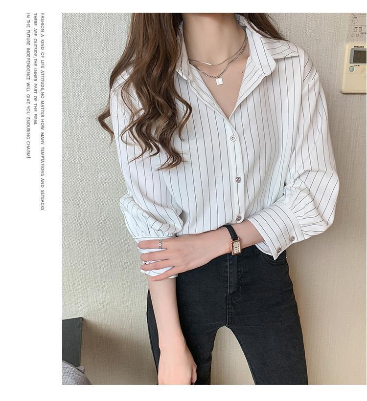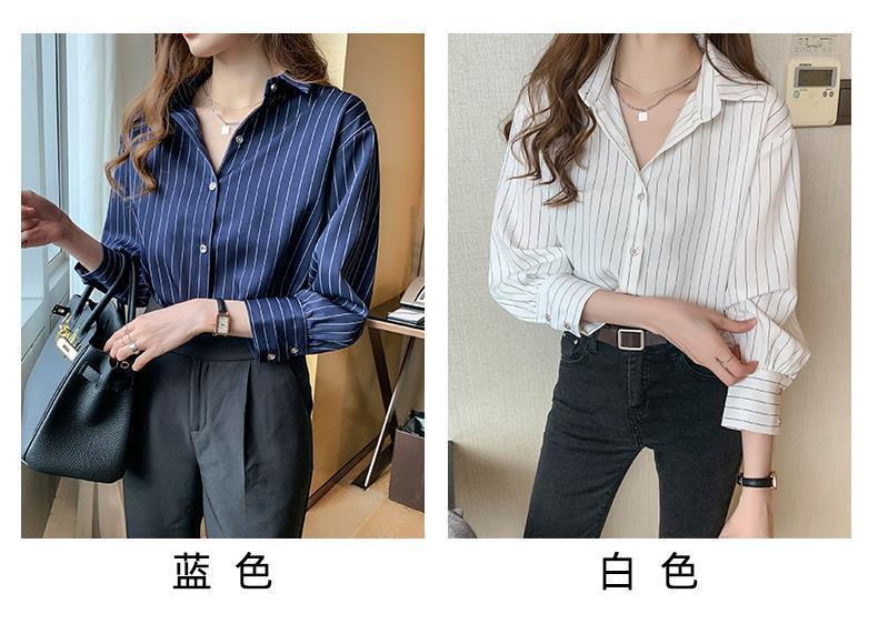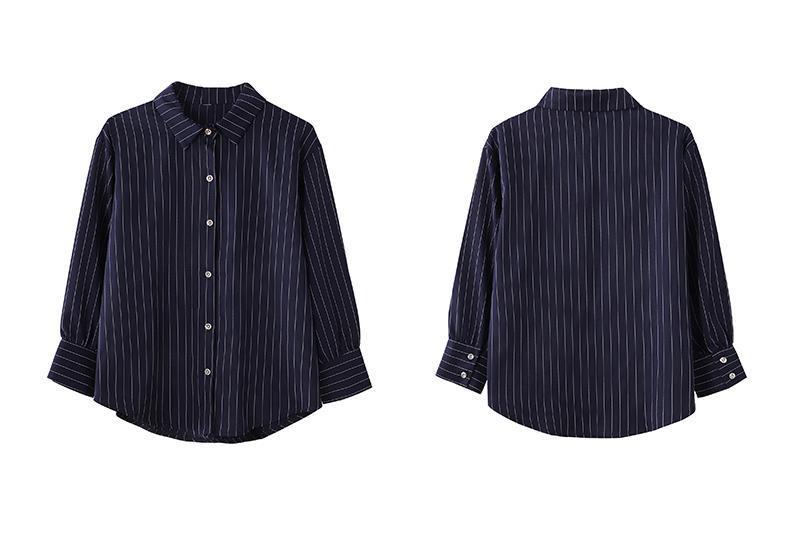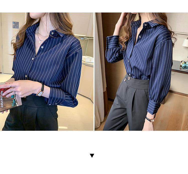 줄무늬 셔츠 여성 디자인 감각 틈새 2025 새로운 봄과 가을 쉬폰 탑 전문 OL 라이트 성숙한 스타일 셔츠스토어 가기