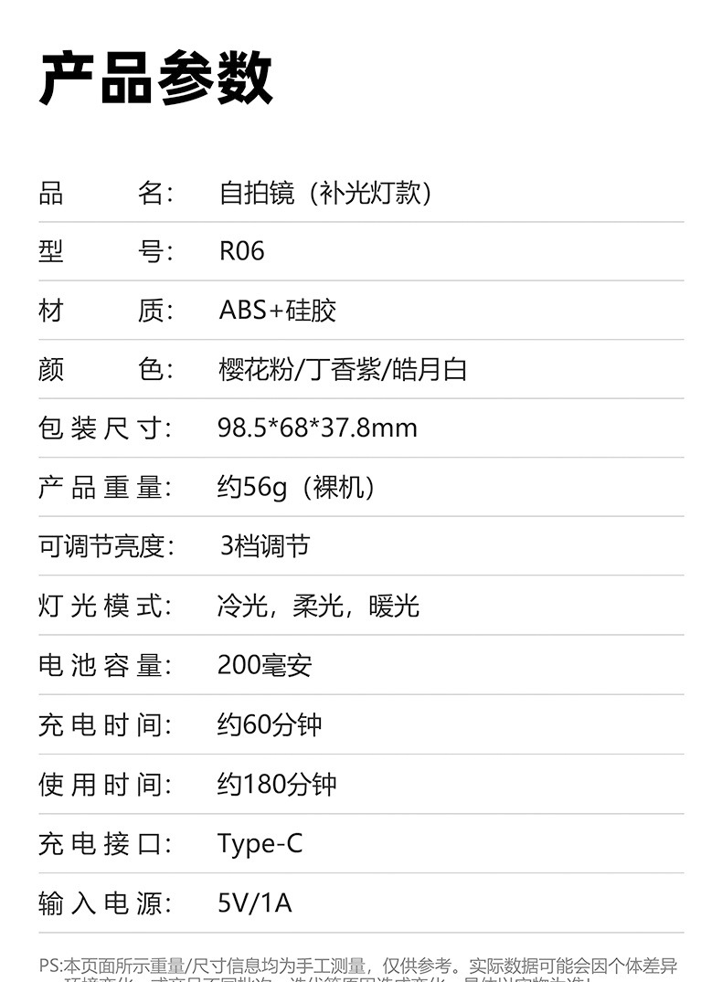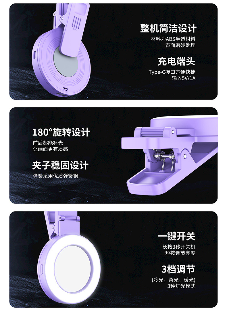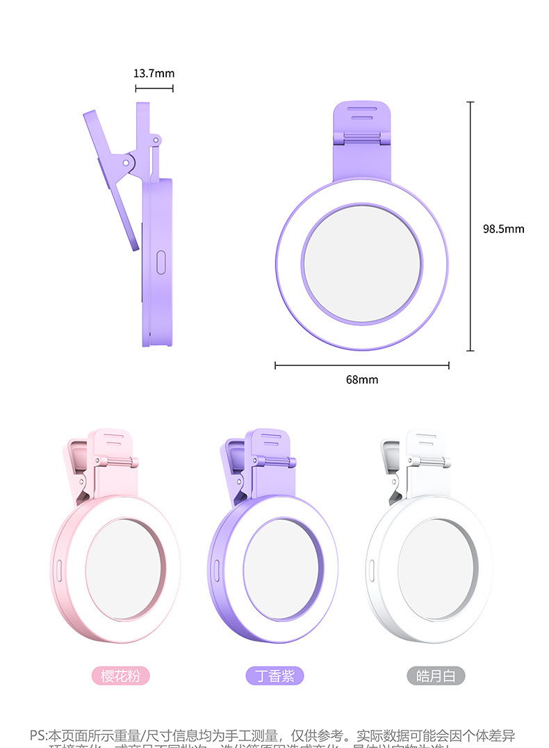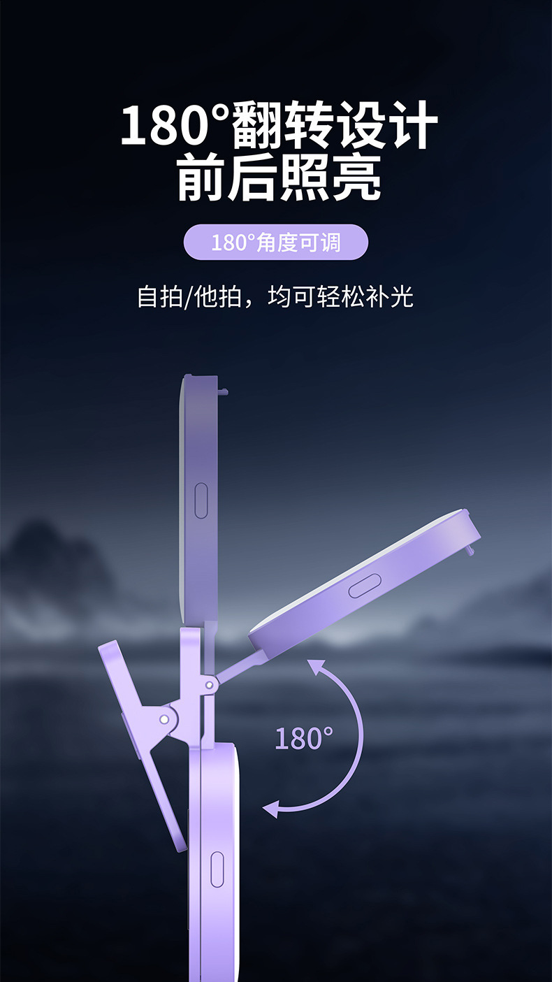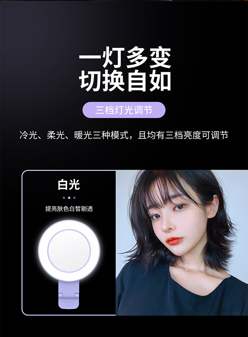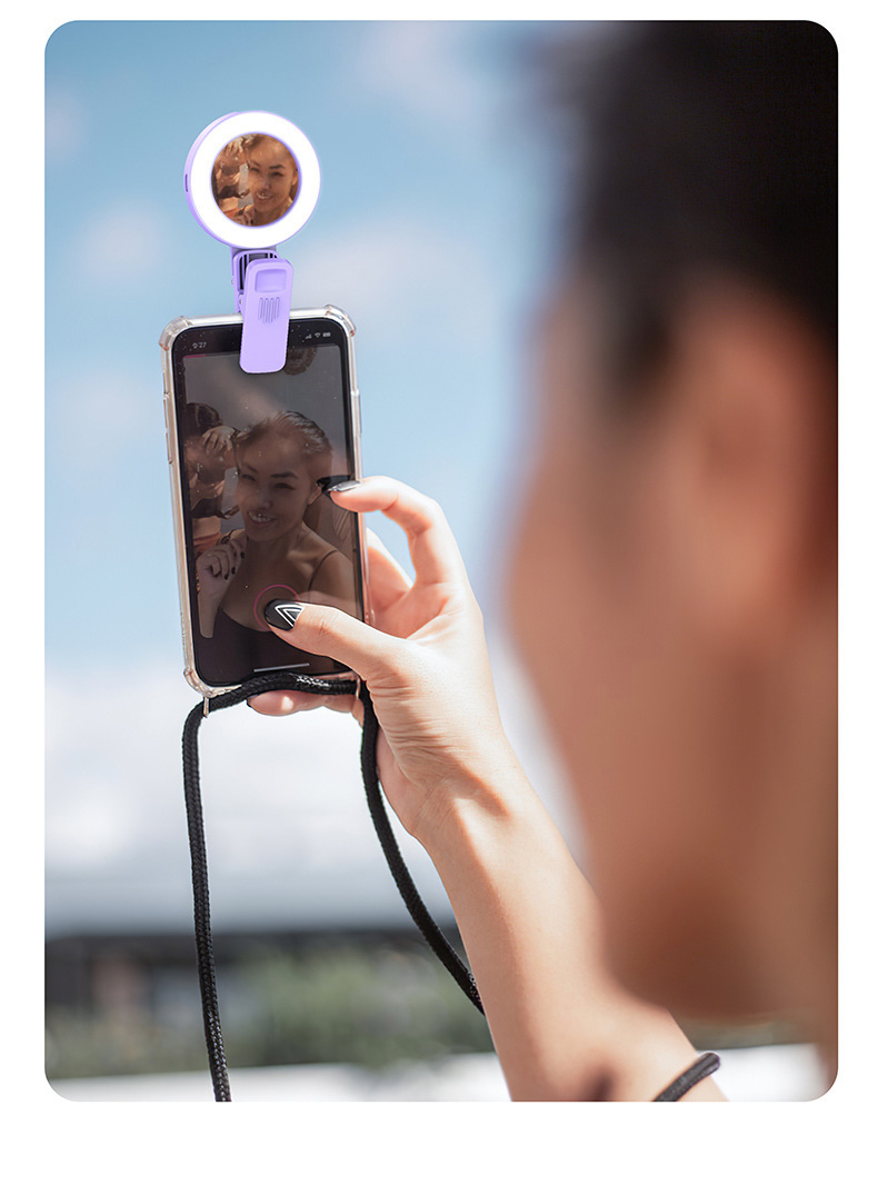 새로운 제품 제조 업체 재고 휴대 전화 충전 라이트 미러 멀티 기능 회전 휴대 전화 후면 채우기 라이트 셀프 사진 미러