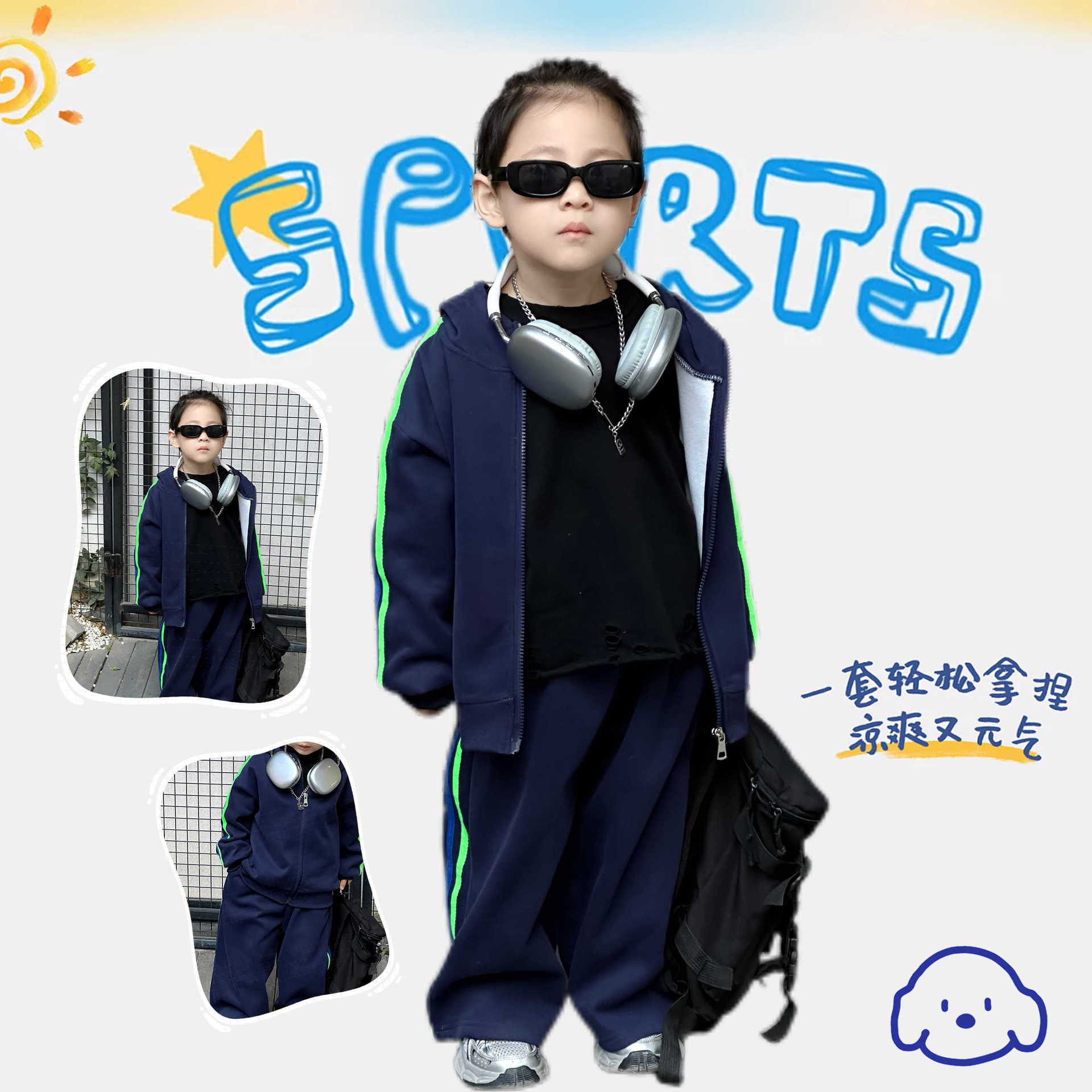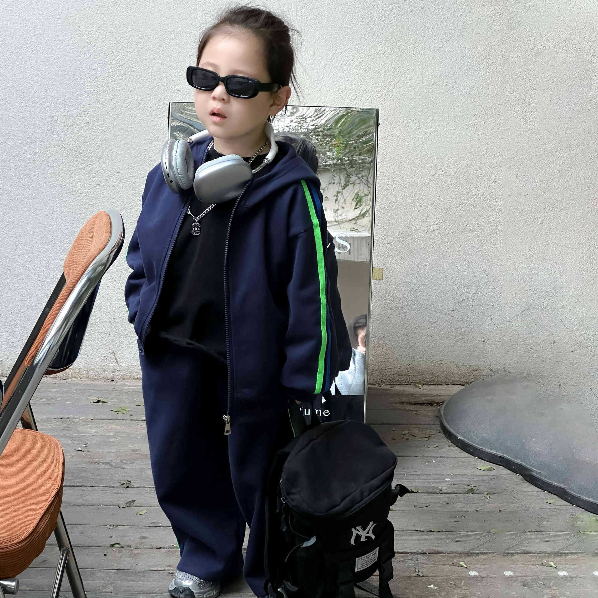 남성과 여성의 세트 봄과 가을 새로운 아동복 스포츠 스웨트 셔츠 대형 어린이 서양식 캐주얼 스웨트 바지 투피스 세트스토어 가기