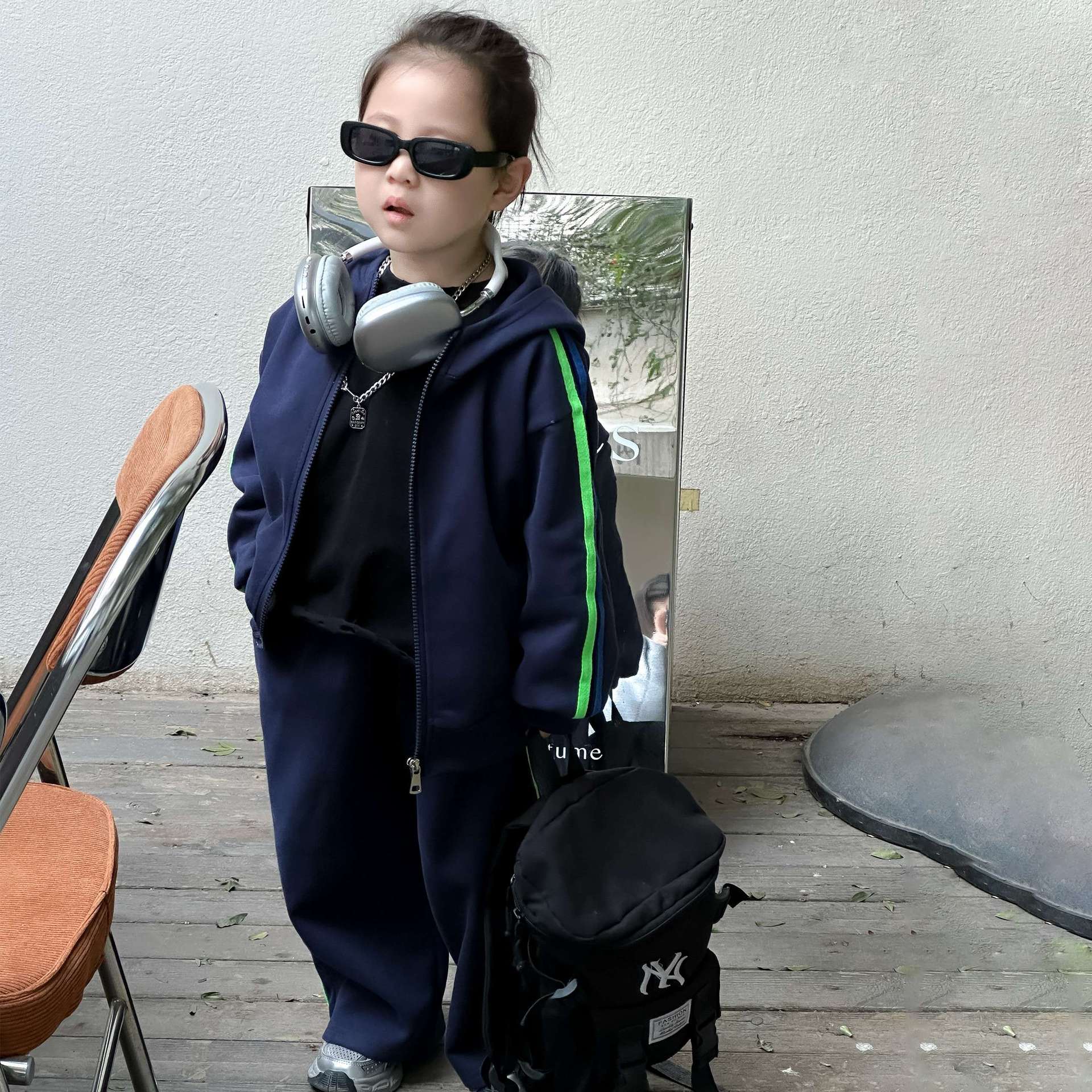 • 사이드 스트립 스웨트셔츠 정장 네이비 블루