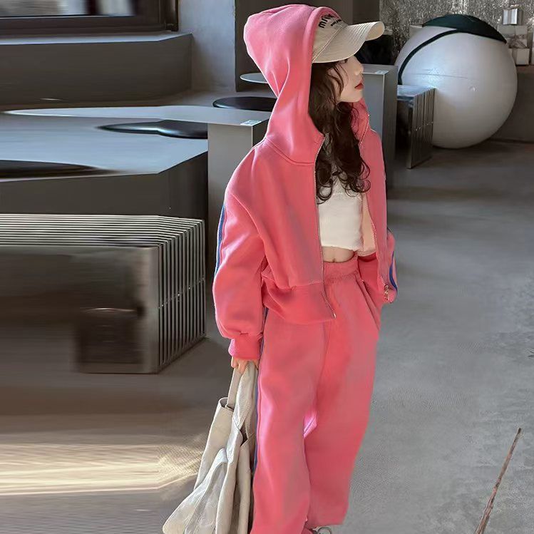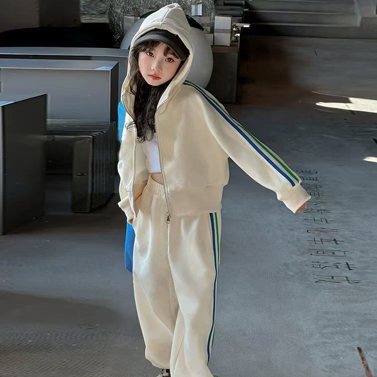 남성과 여성의 세트 봄과 가을 새로운 아동복 스포츠 스웨트 셔츠 대형 어린이 서양식 캐주얼 스웨트 바지 투피스 세트