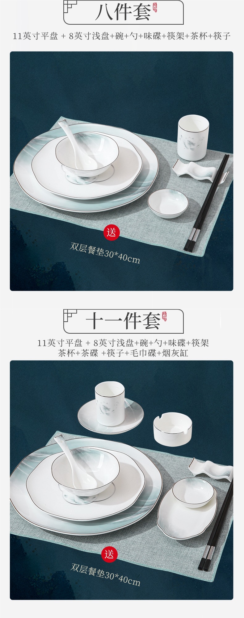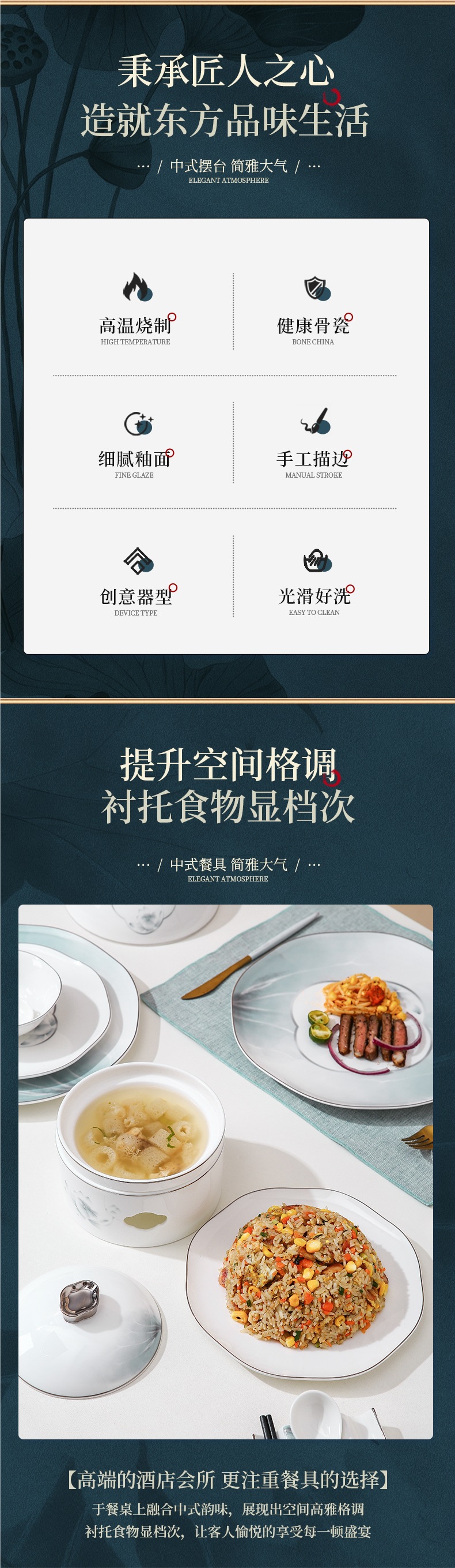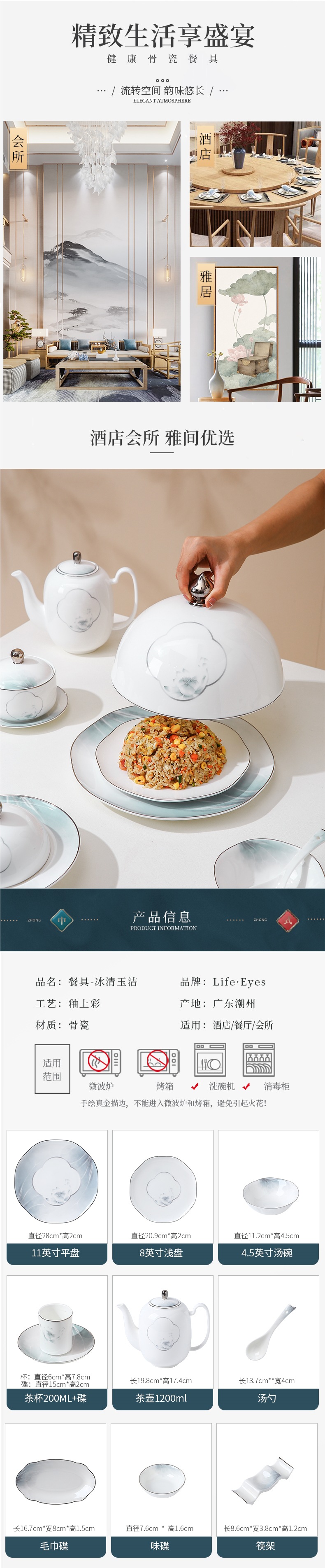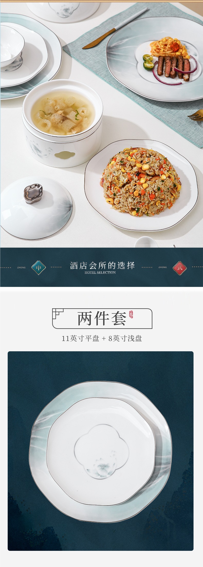 새로운 중국 스타일 호텔 클럽 세트 테이블 식기 디너 플레이트 세라믹 스테이크 플레이트 가정용 그릇 플레이트 세트 고온 뼈 중국스토어 가기