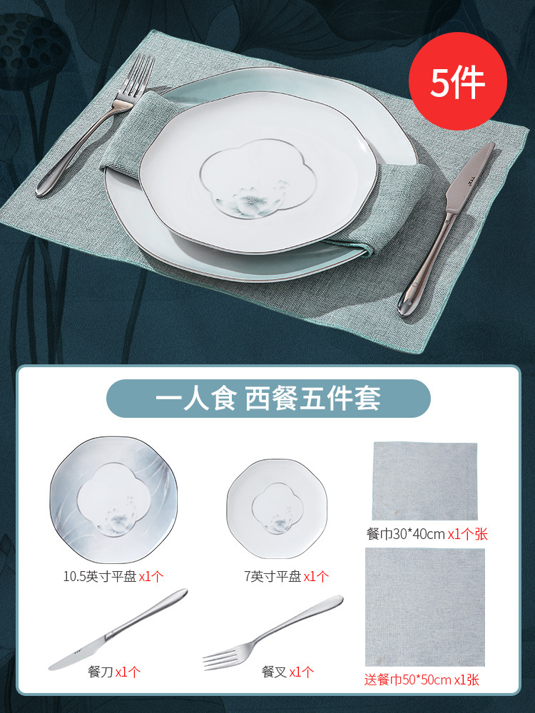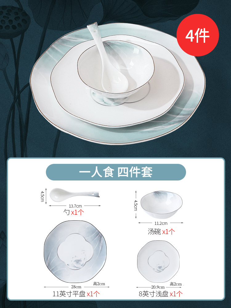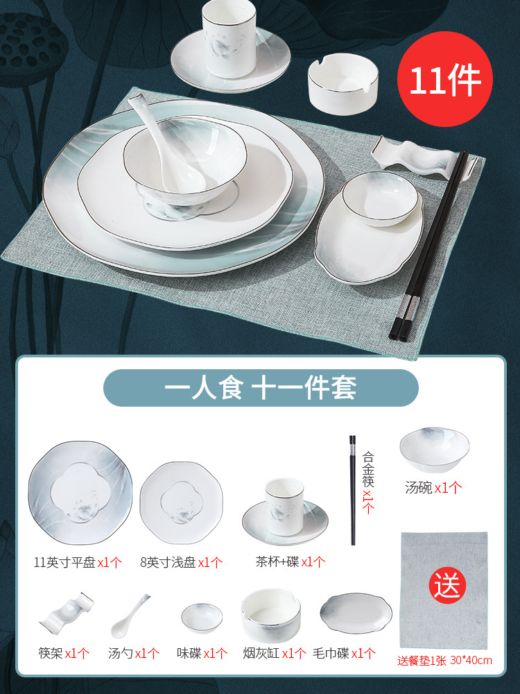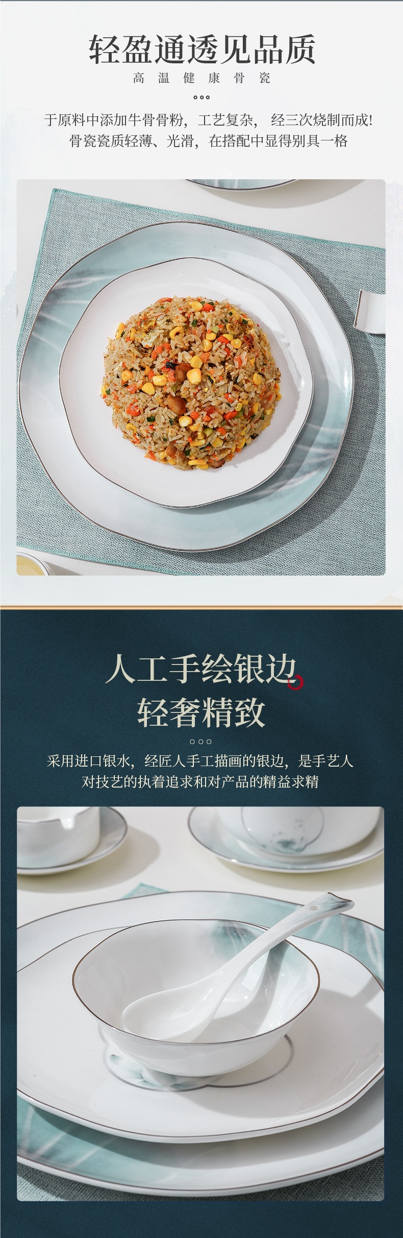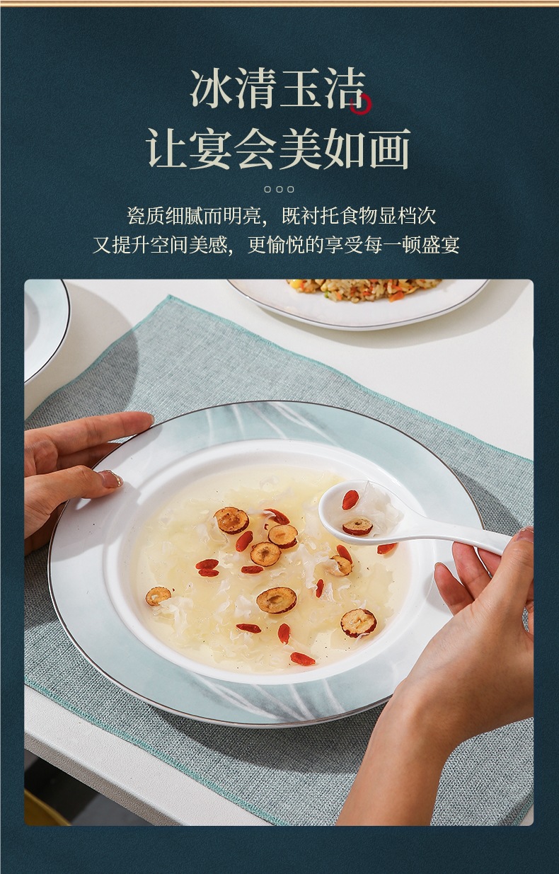 새로운 중국 스타일 호텔 클럽 세트 테이블 식기 디너 플레이트 세라믹 스테이크 플레이트 가정용 그릇 플레이트 세트 고온 뼈 중국스토어 가기
