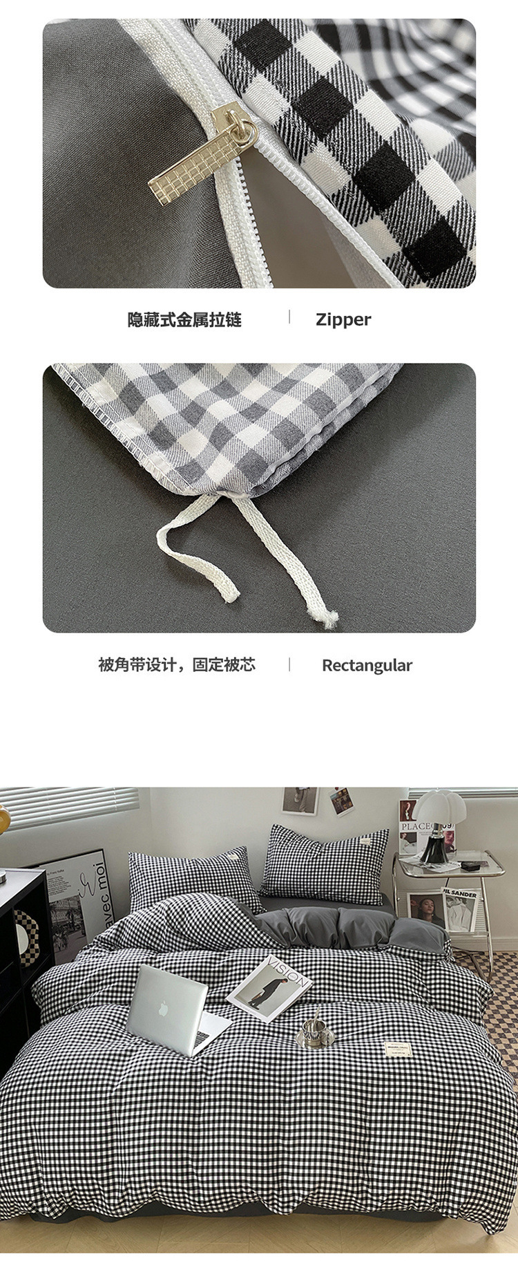 • 흑백 대형 그리드 - 피부 친화적이며 보풀이 발생하지 않음