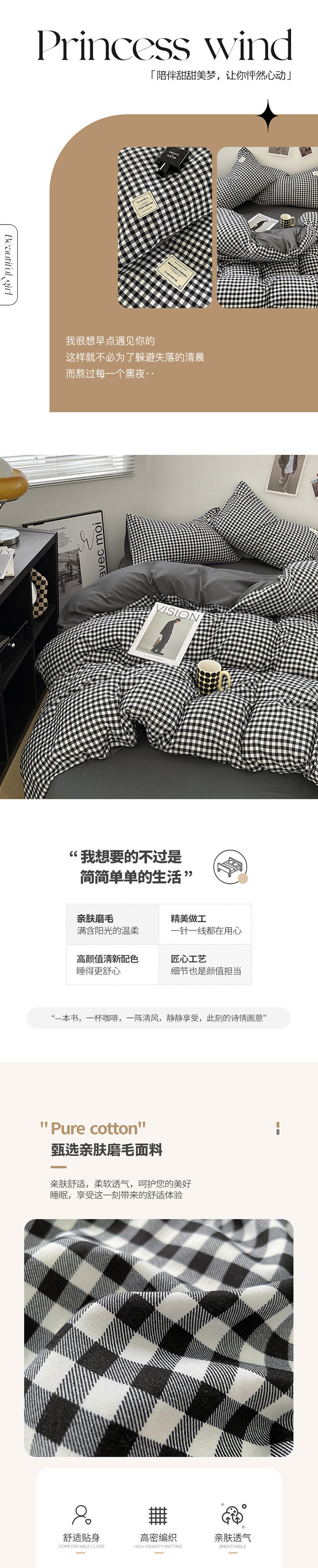 • 흑백 작은 격자 - 피부 친화적이며 보풀이 발생하지 않음