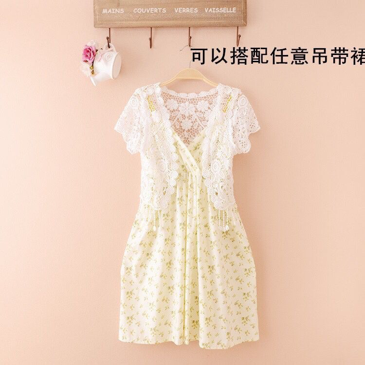 여름 올매치 반팔 작은 목도리 여자 여름 얇은 코트 레이스 니트웨어 할로우 웨이스트 코트 짧은 카디건 우아함스토어 가기