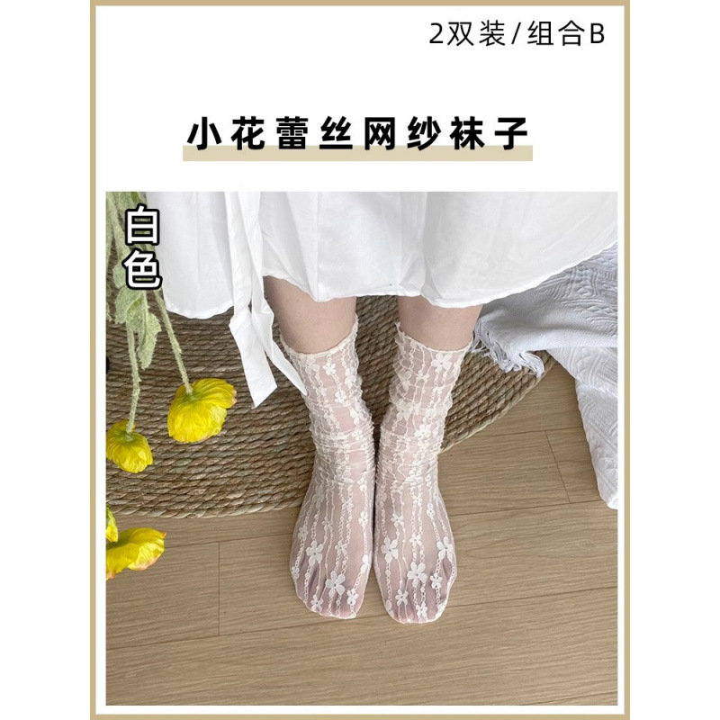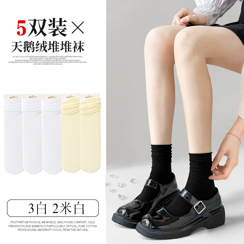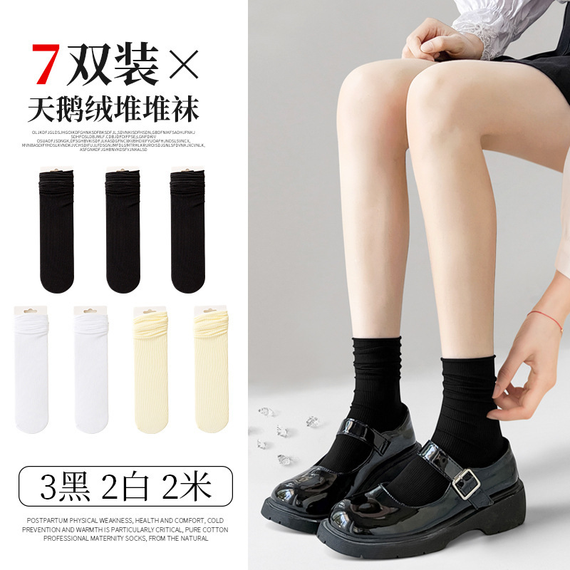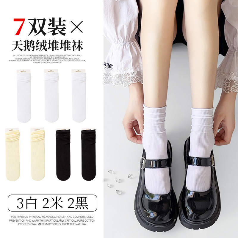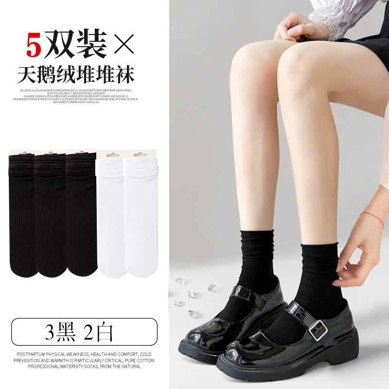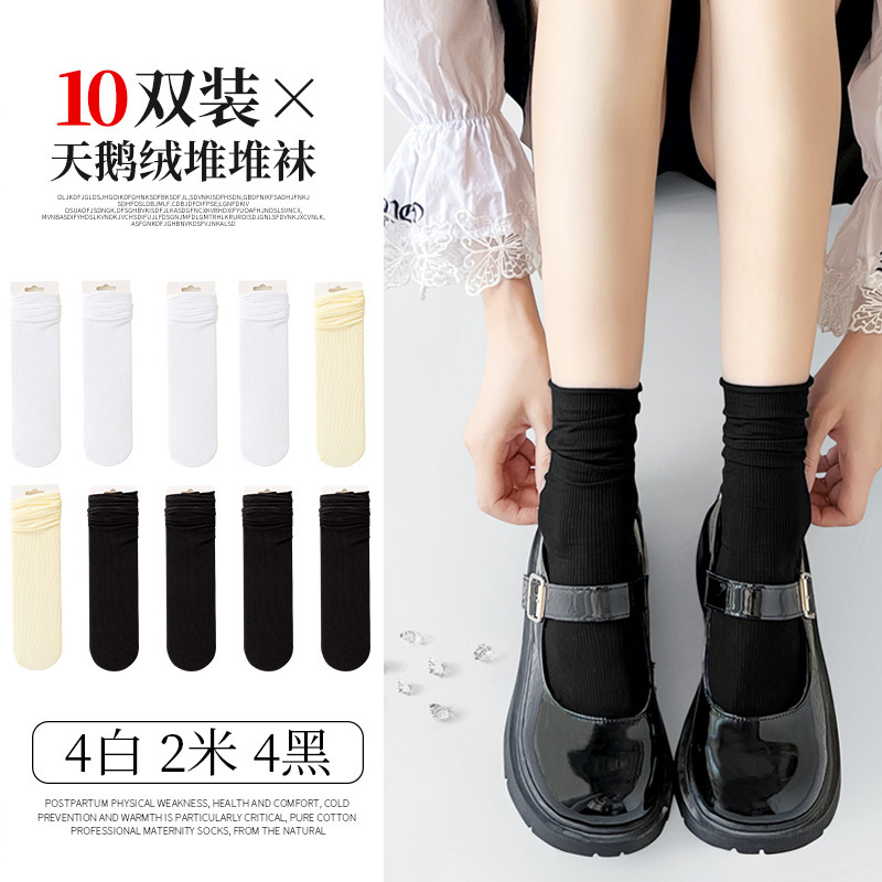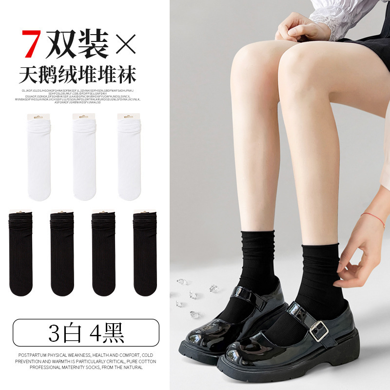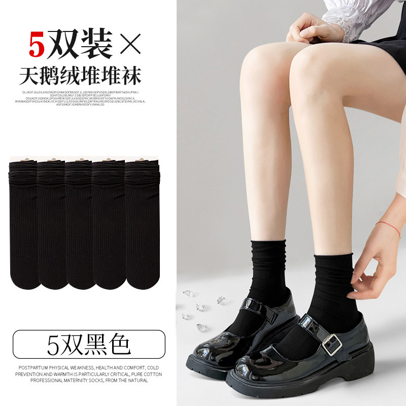 검은 양말 벨벳 얼음 더미 더미 중간 배럴 Lefu 신발 및 양말 여성의 여름 얇은 트렌디 긴 메리 제인