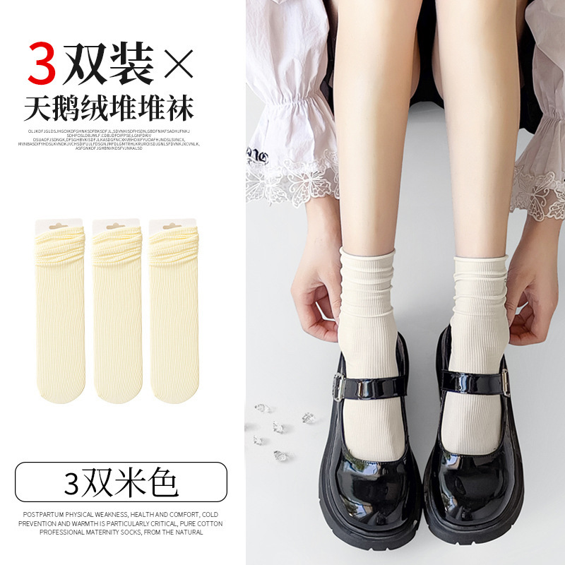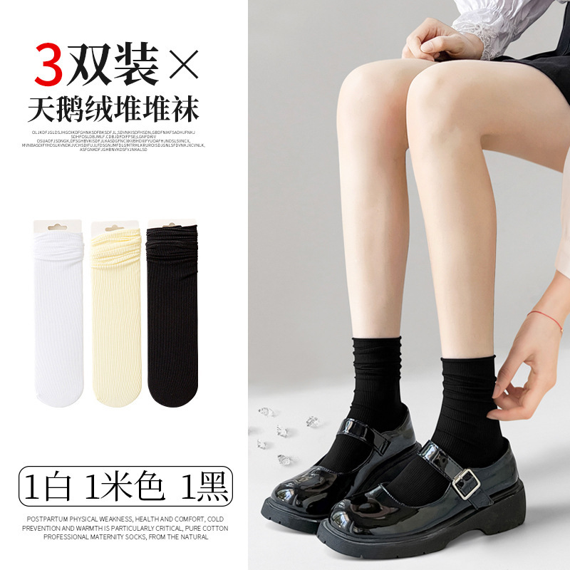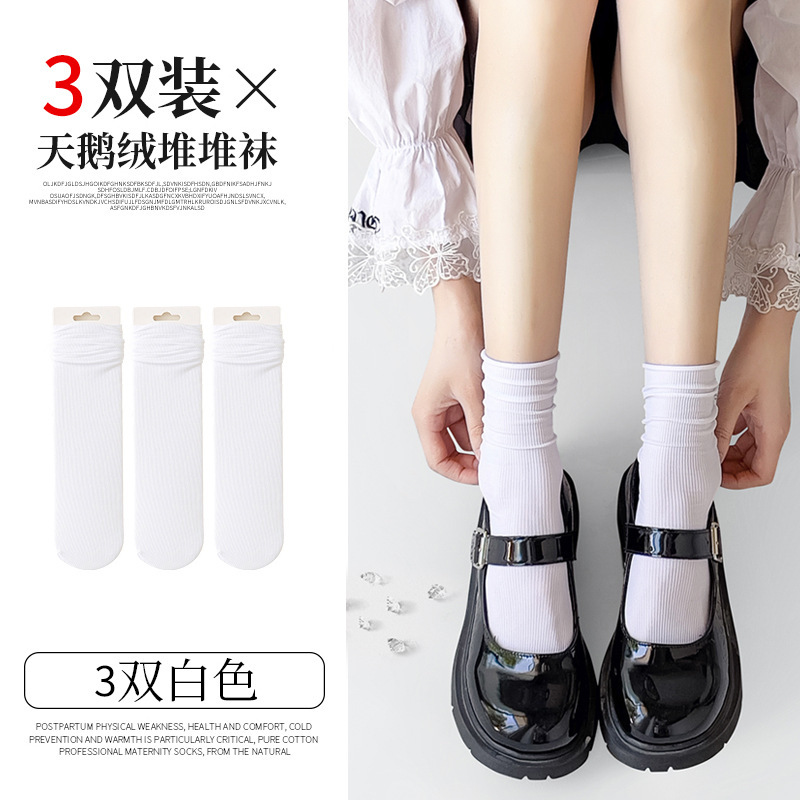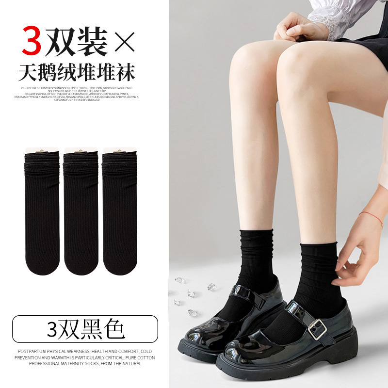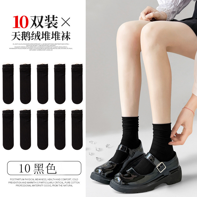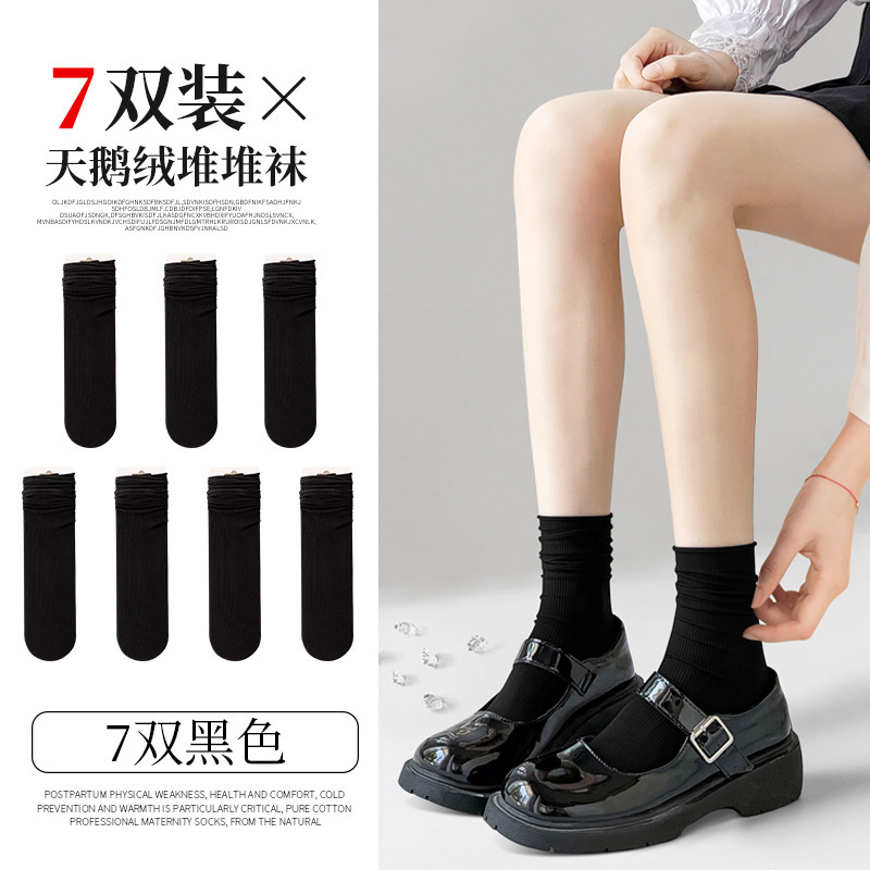 검은 양말 벨벳 얼음 더미 더미 중간 배럴 Lefu 신발 및 양말 여성의 여름 얇은 트렌디 긴 메리 제인스토어 가기